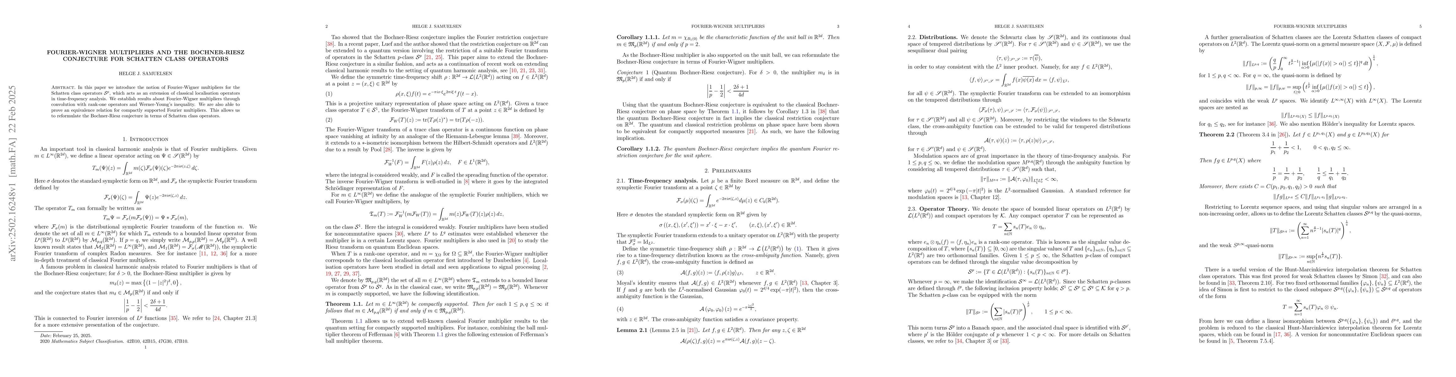 The introduction of Fourier-Wigner multipliers for Schatten class operators and the equivalence relation for compactly supported Fourier multipliers.