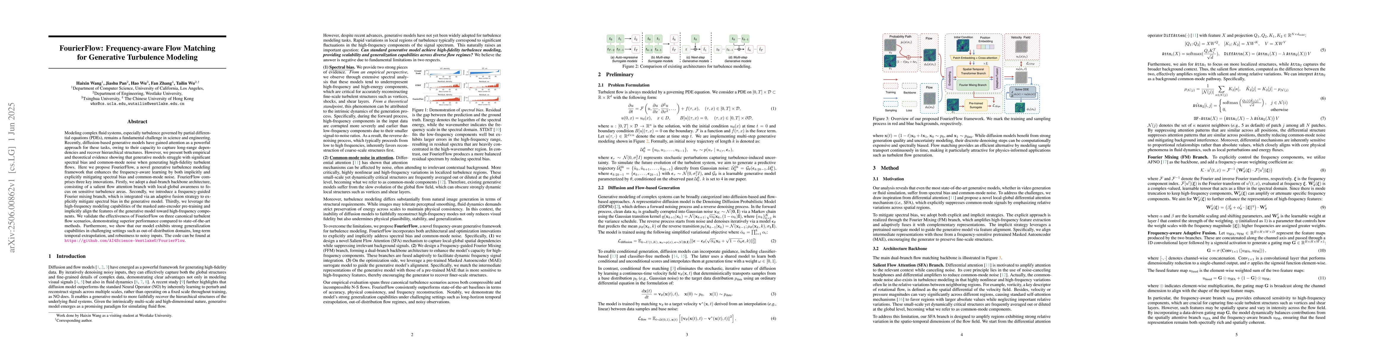 A new generative model, FourierFlow, tackles turbulence modeling by mitigating spectral bias and common-mode noise, achieving superior performance in generating high-fidelity turbulent flows compared to existing methods.