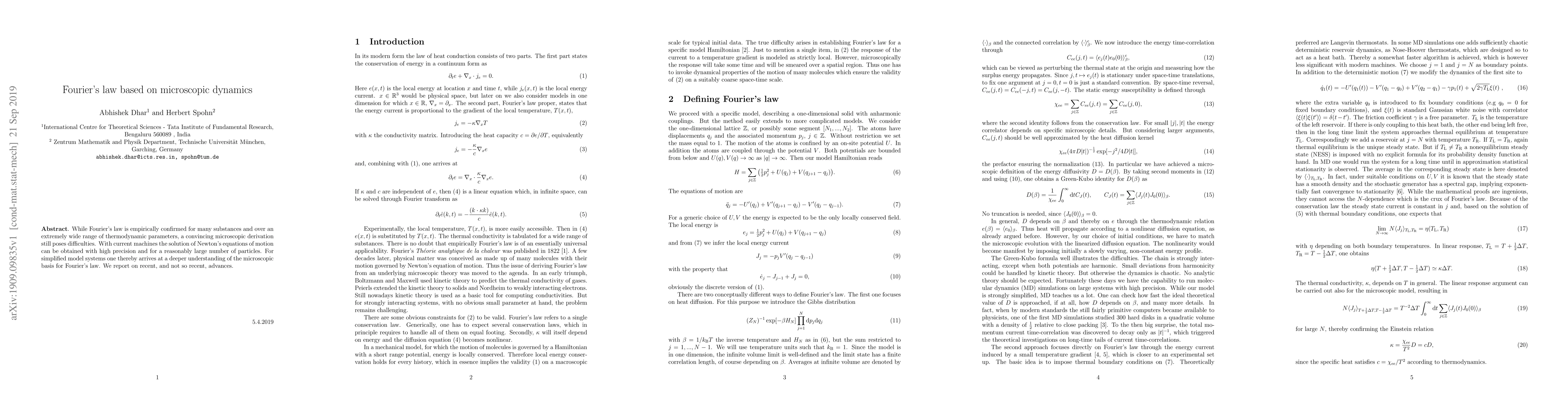 The paper presents detailed molecular dynamics simulations and analysis of energy transport in various model systems, providing a comprehensive understanding of Fourier's law from a microscopic perspective.