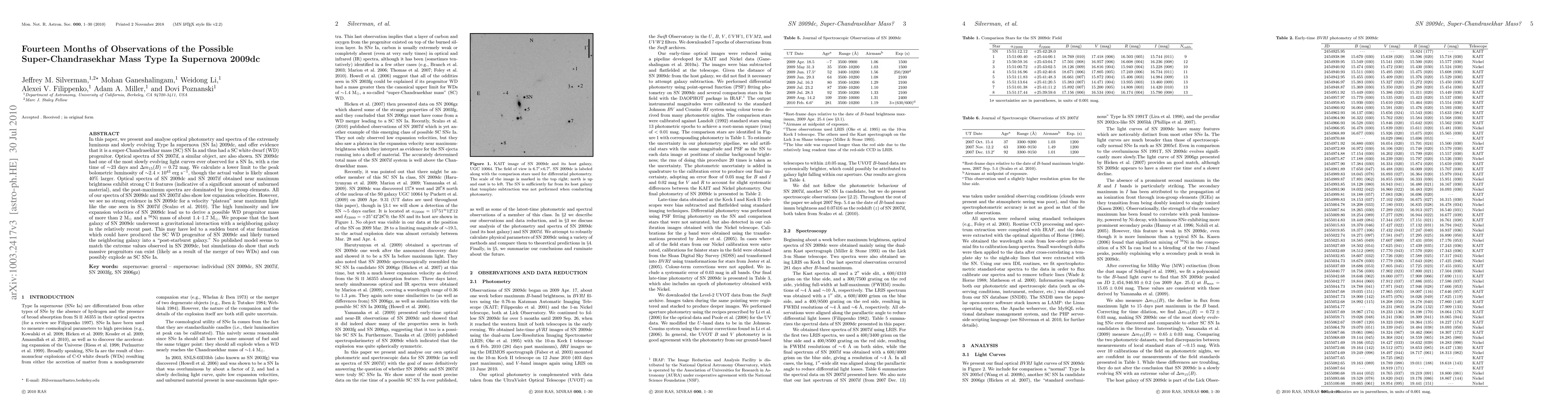 A type of supernova known as super-Chandrasekhar mass Type Ia was observed for 14 months, showing evidence of a white dwarf progenitor with a possible mass over 2 solar masses.