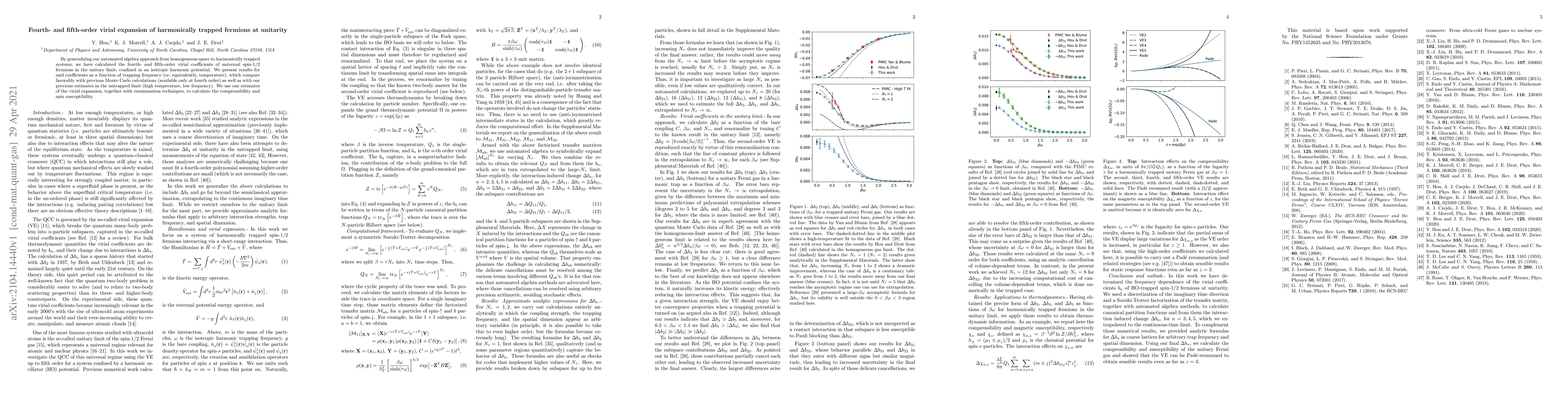This paper calculates the fourth- and fifth-order virial coefficients for spin-1/2 fermions in a harmonic trap at unitarity, extending an automated algebra method. The results are compared with previous Monte Carlo simulations and show good agreement, enabling the calculation of compressibility and spin susceptibility.