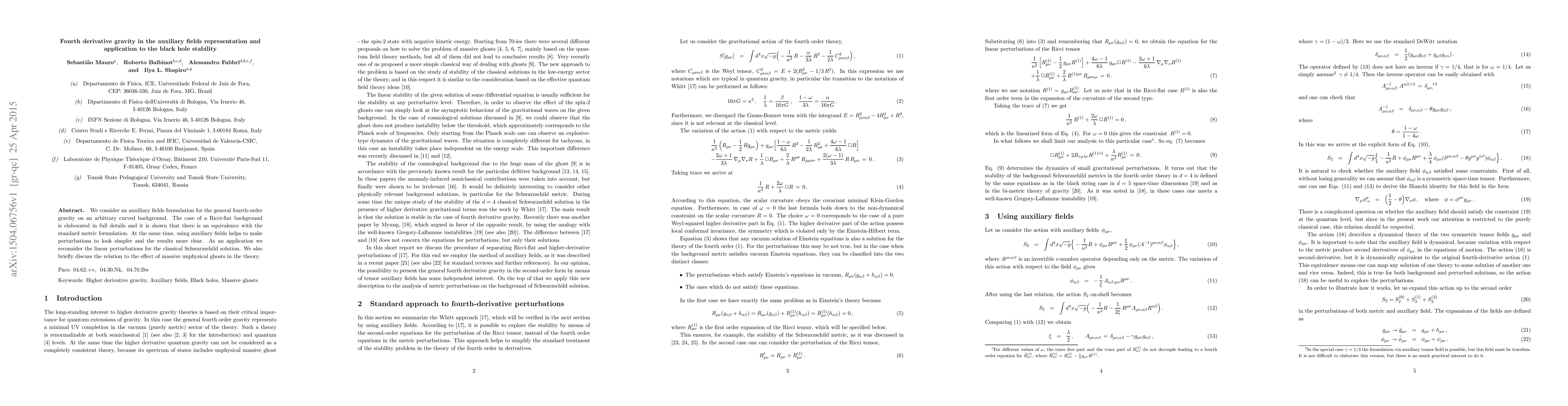 We consider an auxiliary fields formulation for the general fourth-order gravity on an arbitrary curved background. The case of a Ricci-flat background is elaborated in full details and it is shown that there is an equivalence with the standard metric formulation. At the same time, using auxiliary fields helps to make perturbations to look simpler and the results more clear. As an application we reconsider the linear perturbations for the classical Schwarzschild solution. We also briefly discuss the relation to the effect of massive unphysical ghosts in the theory.