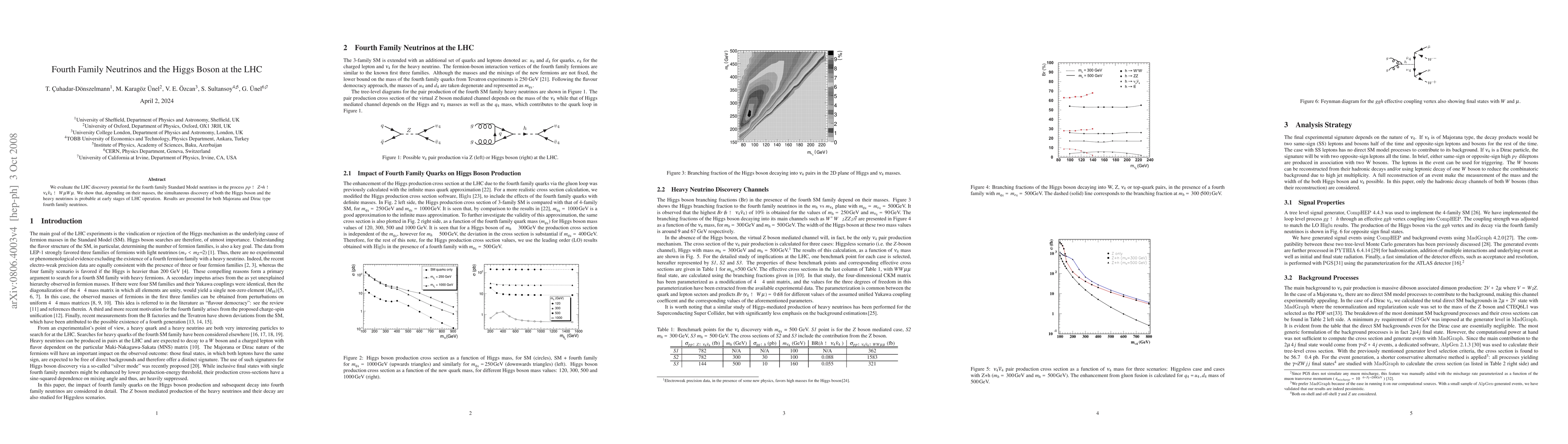 This paper assesses the potential for discovering fourth family Standard Model neutrinos at the LHC through the process $pp\to Z/h\to\nu_{4}{\bar{\nu}_{4}}\to W\mu W\mu$, finding that the simultaneous discovery of these heavy neutrinos and the Higgs boson is likely at early LHC stages, considering both Majorana and Dirac types.