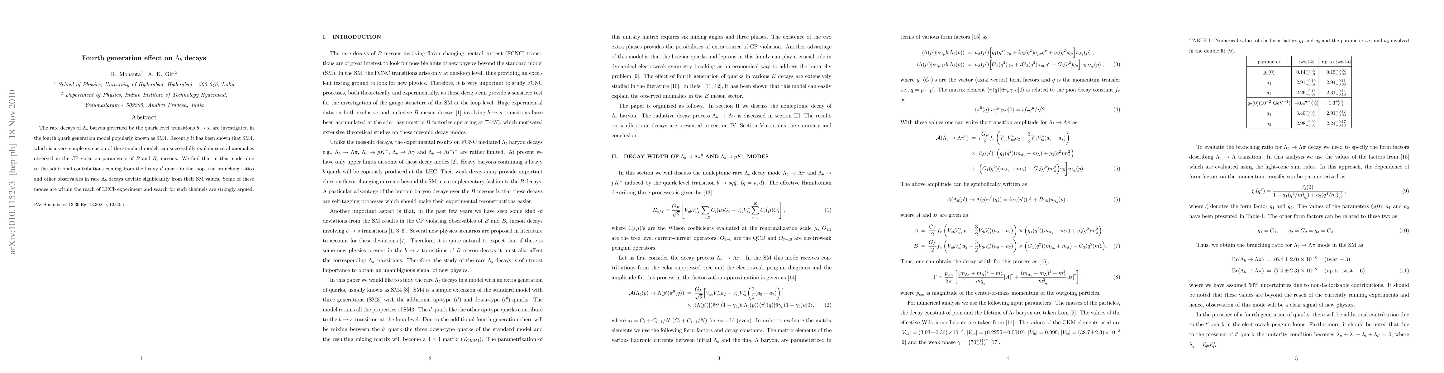 The rare decays of $\Lambda_b$ baryon governed by the quark level transitions $ b \to s$, are investigated in the fourth quark generation model popularly known as SM4. Recently it has been shown that SM4, which is a very simple extension of the standard model, can successfully explain several anomalies observed in the CP violation parameters of $B$ and $B_s$ mesons. We find that in this model due to the additional contributions coming from the heavy $t'$ quark in the loop, the branching ratios and other observables in rare $\Lambda_b$ decays deviate significantly from their SM values. Some of these modes are within the reach of LHCb experiment and search for such channels are strongly argued.