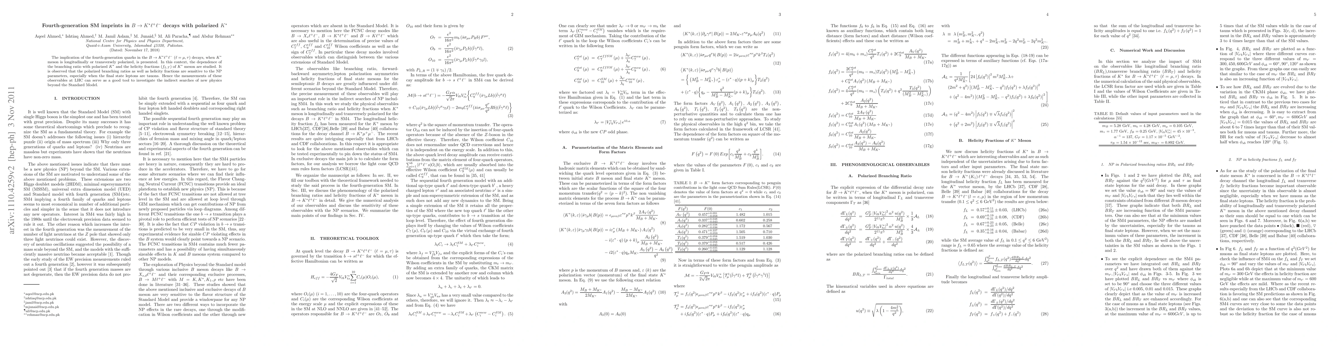 The implication of the fourth-generation quarks in the B -> K^*l^+l^- (l=mu,tau) decays, when K^* meson is longitudinally or transversely polarized, is presented. In this context, the dependence of the branching ratio with polarized K^* and the helicity fractions (f_{L,T}) of K^* meson are studied. It is observed that the polarized branching ratios as well as helicity fractions are sensitive to the NP parameters, especially when the final state leptons are tauons. Hence the measurements of these observables at LHC can serve as a good tool to investigate the indirect searches of new physics beyond the Standard Model.