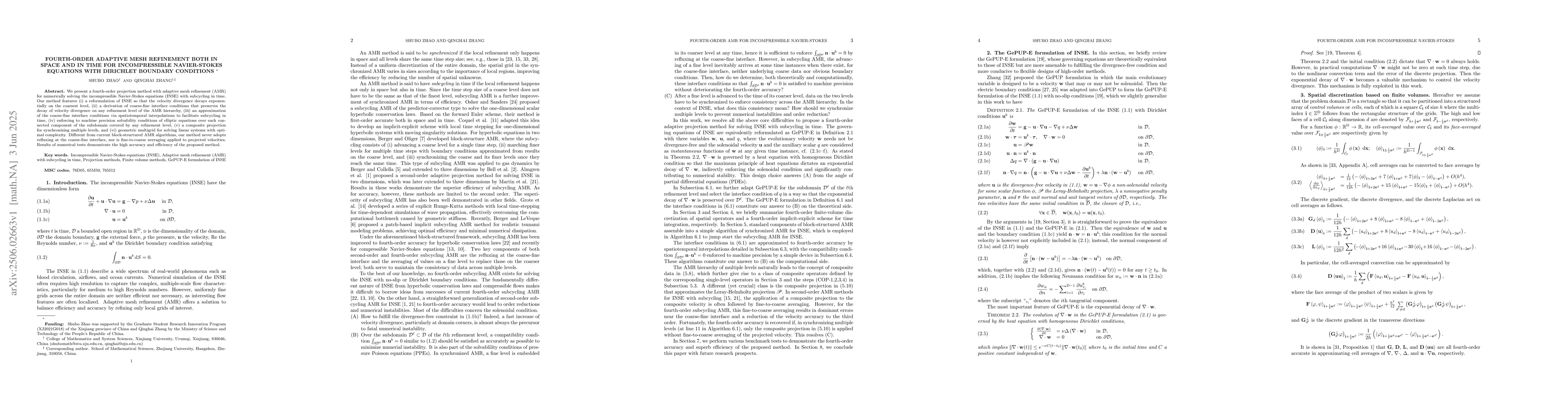 A new adaptive mesh refinement method for solving incompressible Navier-Stokes equations with high accuracy and efficiency is presented, featuring a novel approach to handling coarse-fine interface conditions and subcycling in time.