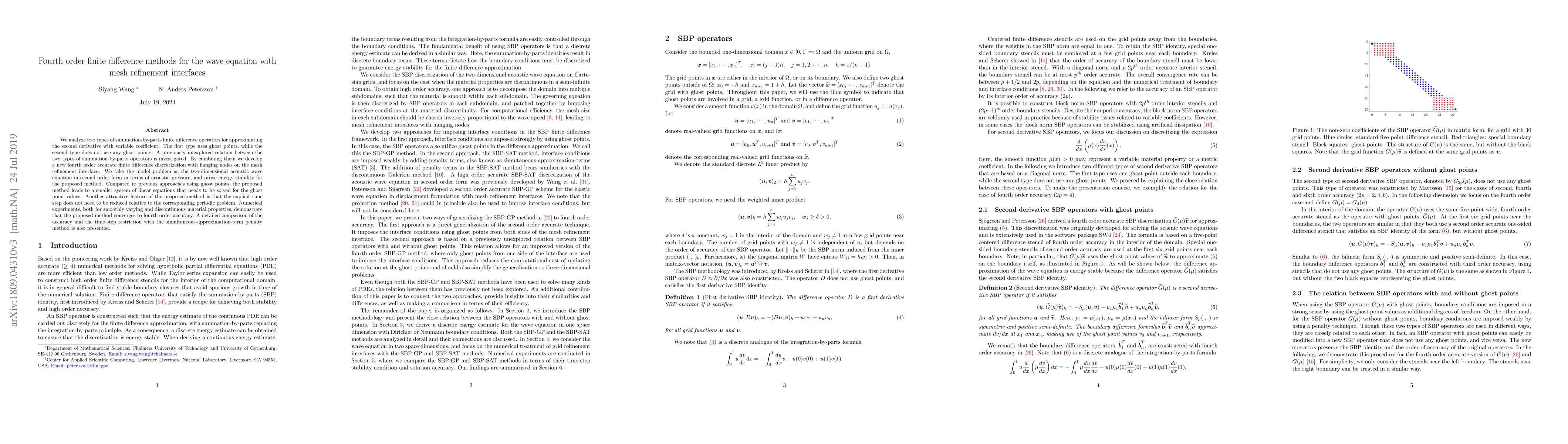 Researchers develop a new fourth-order accurate finite difference method for simulating acoustic wave equations with mesh refinement interfaces, achieving smaller system sizes and no reduced explicit time steps.