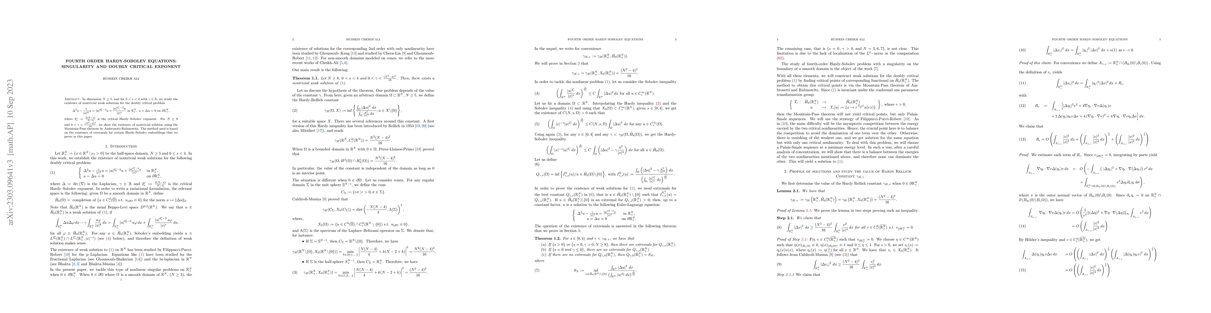 This paper investigates the existence of nontrivial weak solutions for a fourth-order Hardy-Sobolev equation in dimensions $N\geq 5$ and $0<s<4$. Using the Mountain-Pass theorem, it proves the existence of nontrivial solutions for $N\geq 8$ and specific $\gamma$ values, leveraging the existence of extremals for Hardy-Sobolev embeddings.