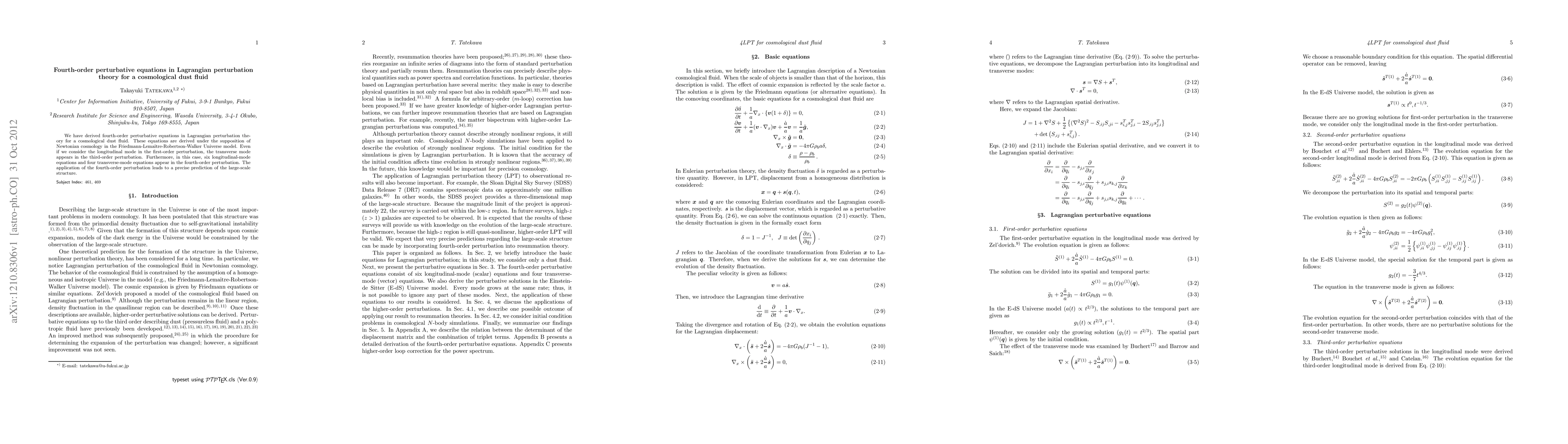 This paper derives fourth-order perturbative equations in Lagrangian perturbation theory for a cosmological dust fluid within the framework of Newtonian cosmology in the Friedmann-Lemaître-Robertson-Walker Universe model, revealing the emergence of both longitudinal and transverse modes in higher-order perturbations.