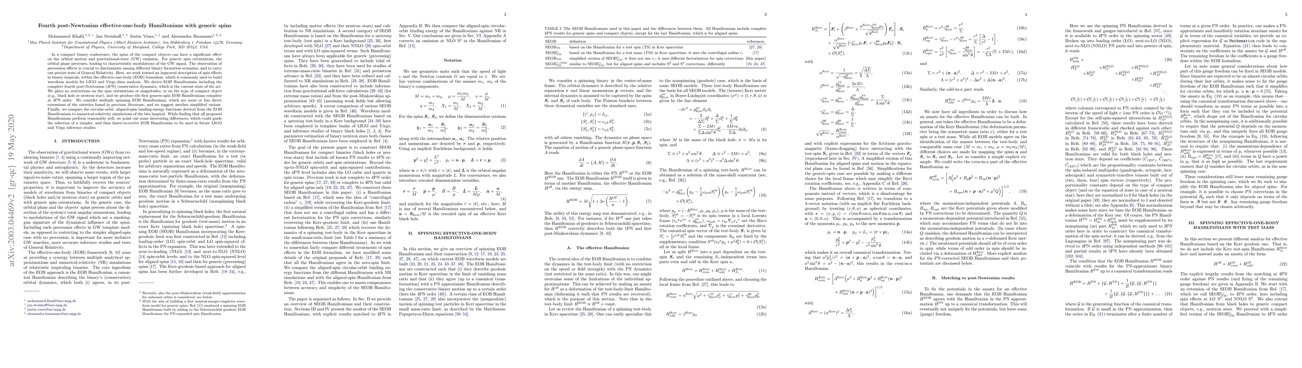 Researchers developed new effective-one-body Hamiltonians for binary systems with generic spins, improving the description of spin effects in gravitational-wave emission. These models can help discriminate between different binary formation scenarios and test General Relativity.