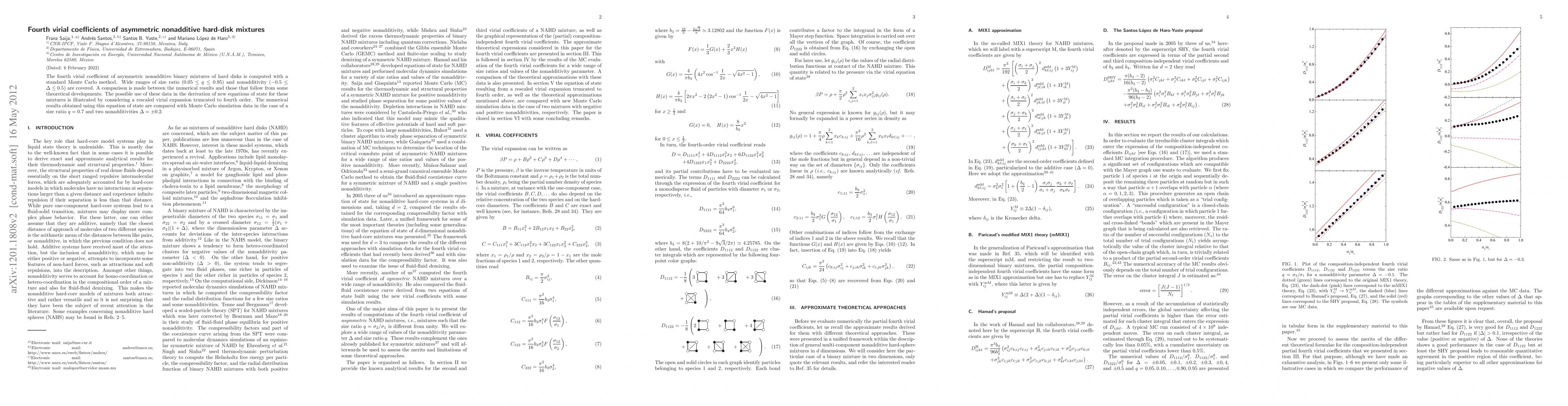 This paper computes the fourth virial coefficient for asymmetric nonadditive hard-disk mixtures using Monte Carlo simulations across a range of size ratios and nonadditivity levels. It compares simulation results with theoretical predictions and demonstrates the potential for using these coefficients in deriving new equations of state.