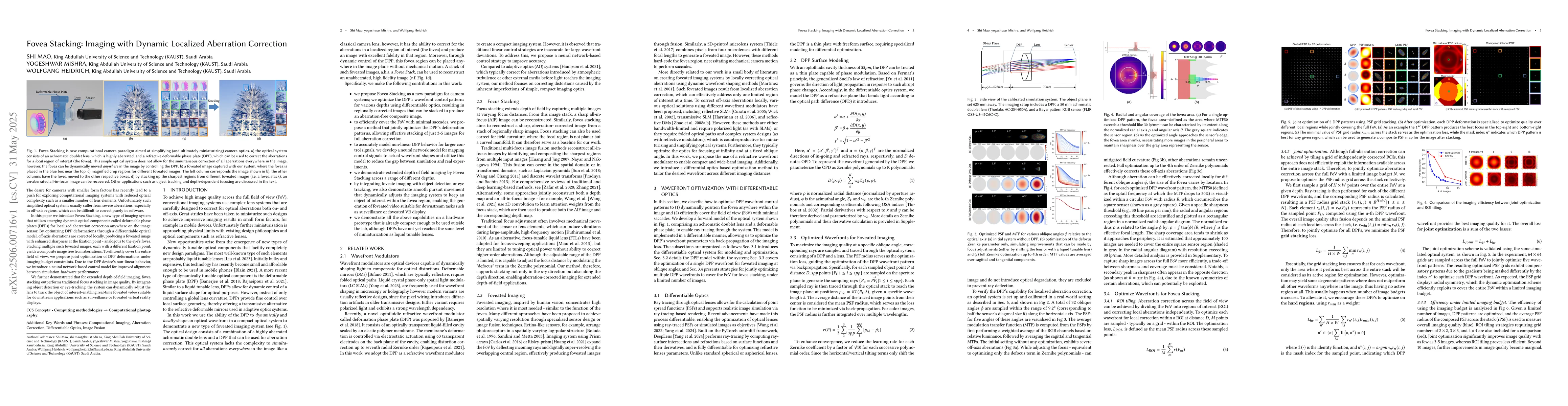 The Fovea Stacking method introduces a new paradigm for camera systems, dynamically correcting localized aberrations and efficiently stacking images for high-quality composite images with drastically reduced aberrations.