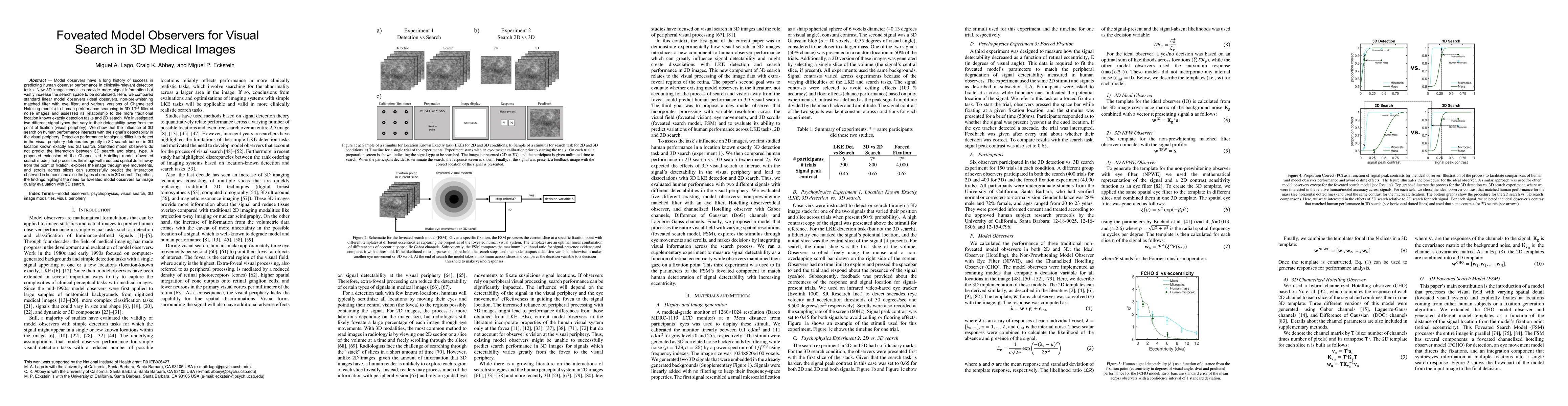 Researchers developed a new model observer to predict human performance in 3D medical image search tasks, highlighting the need for foveated models that adapt to signal detectability in the visual periphery.