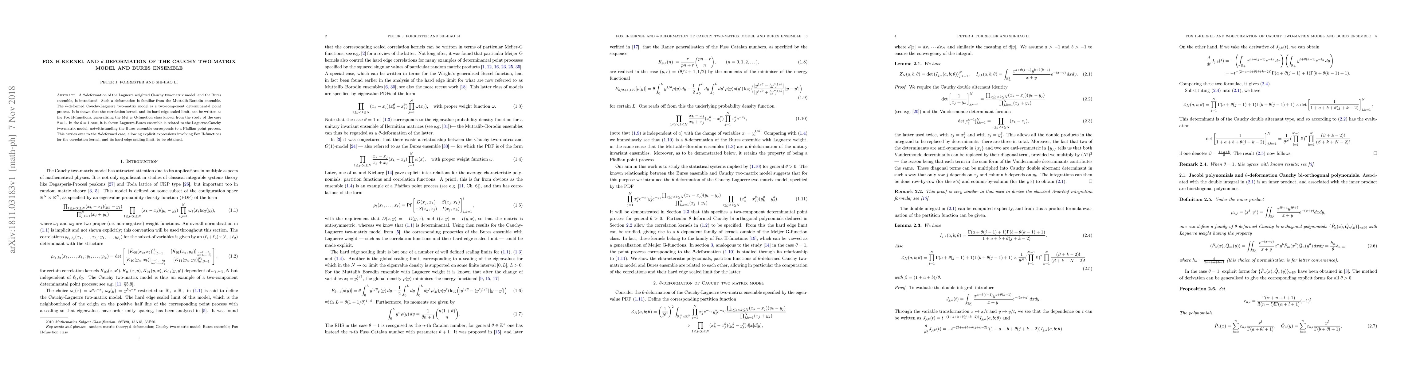 This paper introduces a $\theta$-deformed version of the Cauchy two-matrix model and the Bures ensemble, showing it results in a two-component determinantal point process. The correlation kernel is expressed using Fox H-functions, generalizing the Meijer G-function, and the hard edge scaling limit is also derived explicitly.