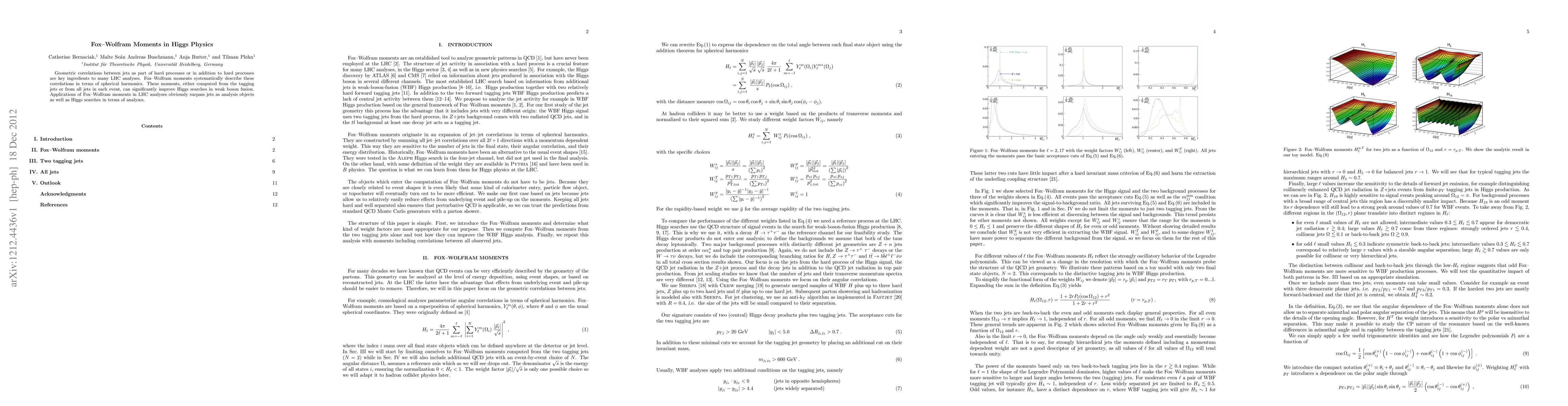 Geometric correlations between jets as part of hard processes or in addition to hard processes are key ingredients to many LHC analyses. Fox--Wolfram moments systematically describe these correlations in terms of spherical harmonics. These moments, either computed from the tagging jets or from all jets in each event, can significantly improve Higgs searches in weak boson fusion. Applications of Fox--Wolfram moments in LHC analyses obviously surpass jets as analysis objects as well as Higgs searches in terms of analyses.