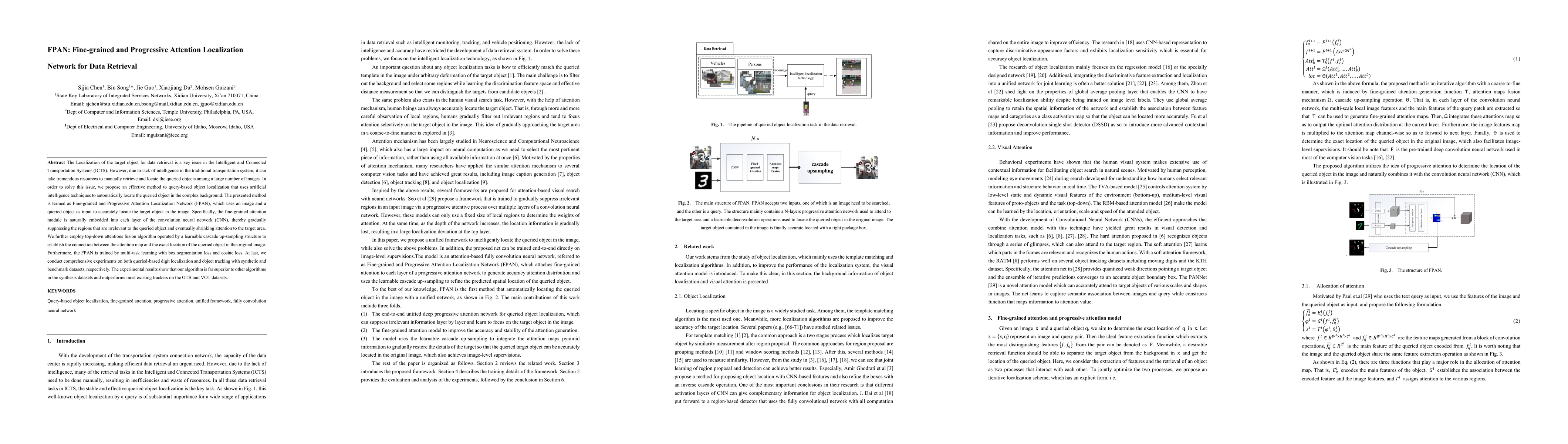 The Localization of the target object for data retrieval is a key issue in the Intelligent and Connected Transportation Systems (ICTS). However, due to lack of intelligence in the traditional transportation system, it can take tremendous resources to manually retrieve and locate the queried objects among a large number of images. In order to solve this issue, we propose an effective method to query-based object localization that uses artificial intelligence techniques to automatically locate the queried object in the complex background. The presented method is termed as Fine-grained and Progressive Attention Localization Network (FPAN), which uses an image and a queried object as input to accurately locate the target object in the image. Specifically, the fine-grained attention module is naturally embedded into each layer of the convolution neural network (CNN), thereby gradually suppressing the regions that are irrelevant to the queried object and eventually shrinking attention to the target area. We further employ top-down attentions fusion algorithm operated by a learnable cascade up-sampling structure to establish the connection between the attention map and the exact location of the queried object in the original image. Furthermore, the FPAN is trained by multi-task learning with box segmentation loss and cosine loss. At last, we conduct comprehensive experiments on both queried-based digit localization and object tracking with synthetic and benchmark datasets, respectively. The experimental results show that our algorithm is far superior to other algorithms in the synthesis datasets and outperforms most existing trackers on the OTB and VOT datasets.