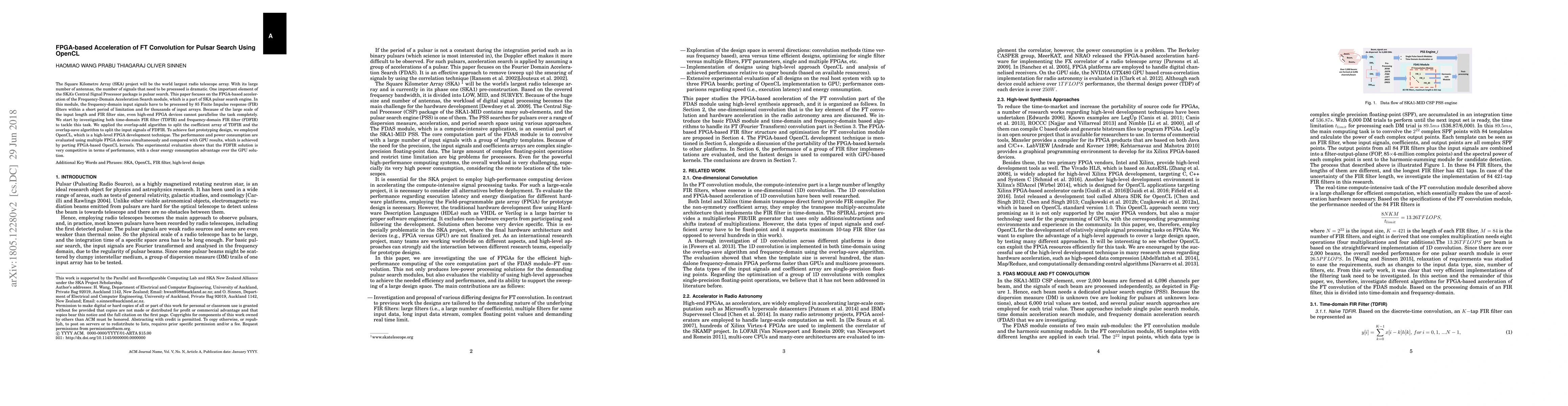 This paper explores FPGA-based acceleration of the Frequency-Domain Acceleration Search module for pulsar search in the SKA project using OpenCL. It demonstrates that the frequency-domain FIR filter approach, enhanced with OpenCL, outperforms GPU solutions in performance and offers significant energy savings.