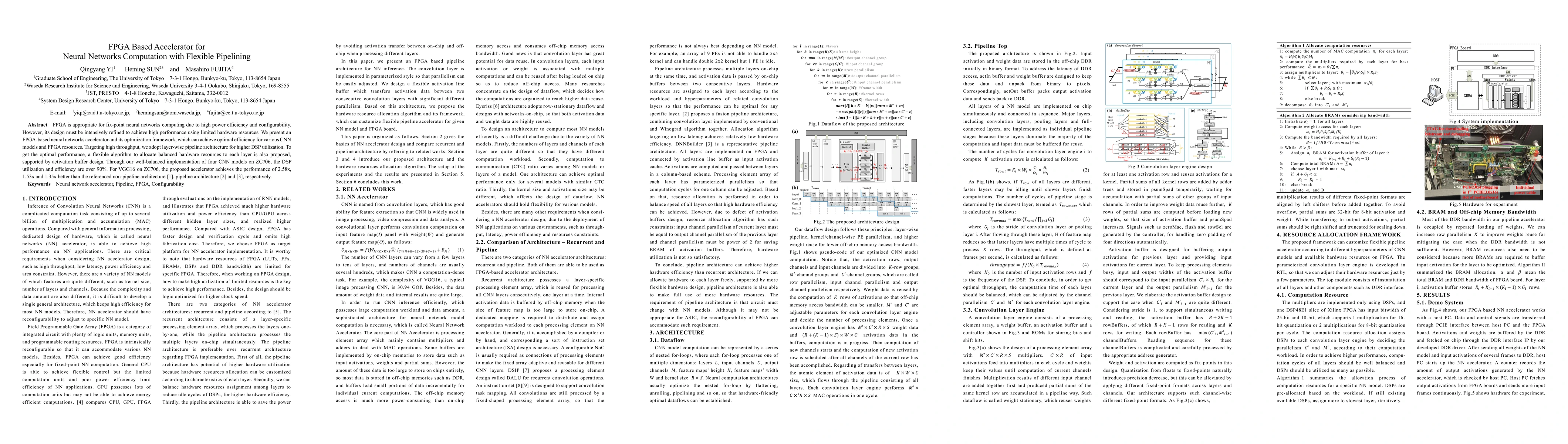 This paper presents an FPGA-based accelerator for neural network computations, optimized for high throughput using flexible pipelining and resource allocation. The proposed framework achieves over 90% DSP utilization and significantly outperforms existing architectures for various CNN models.