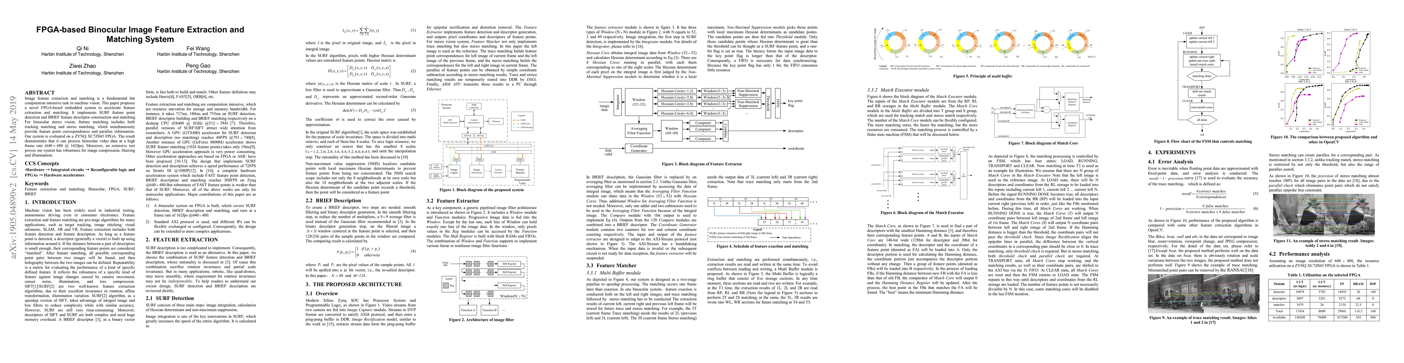 This paper proposes an FPGA-based system for accelerating binocular image feature extraction and matching, implementing SURF and BRIEF for point detection and descriptor. The system achieves high frame rates and demonstrates robustness against image distortions.