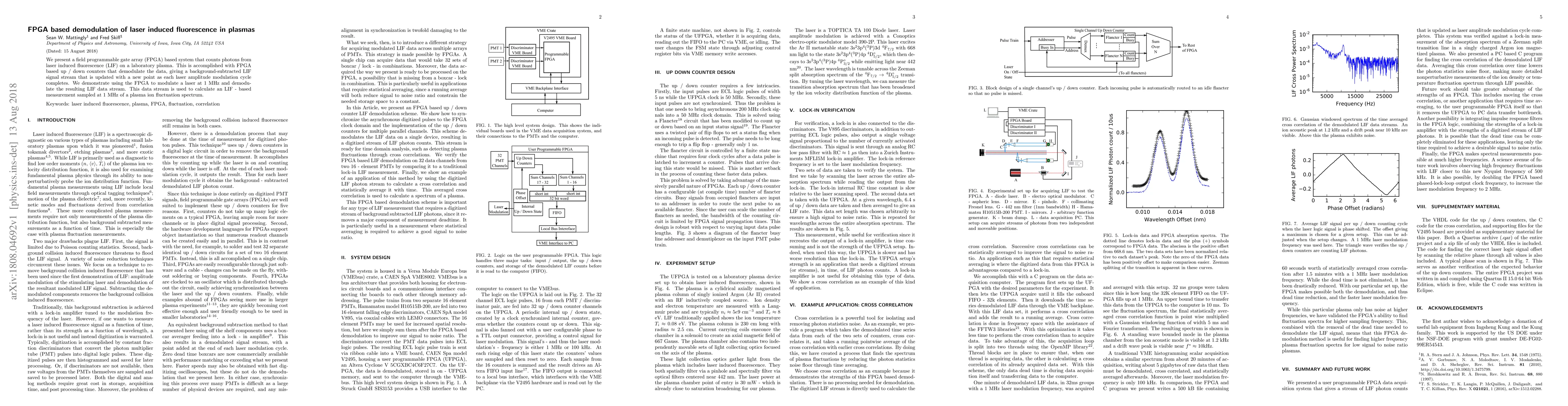 This research introduces an FPGA-based system for counting photons from laser-induced fluorescence (LIF) in plasmas, employing FPGA counters to demodulate data and provide a background-subtracted LIF signal at 1 MHz, enabling the measurement of plasma ion fluctuation spectra.