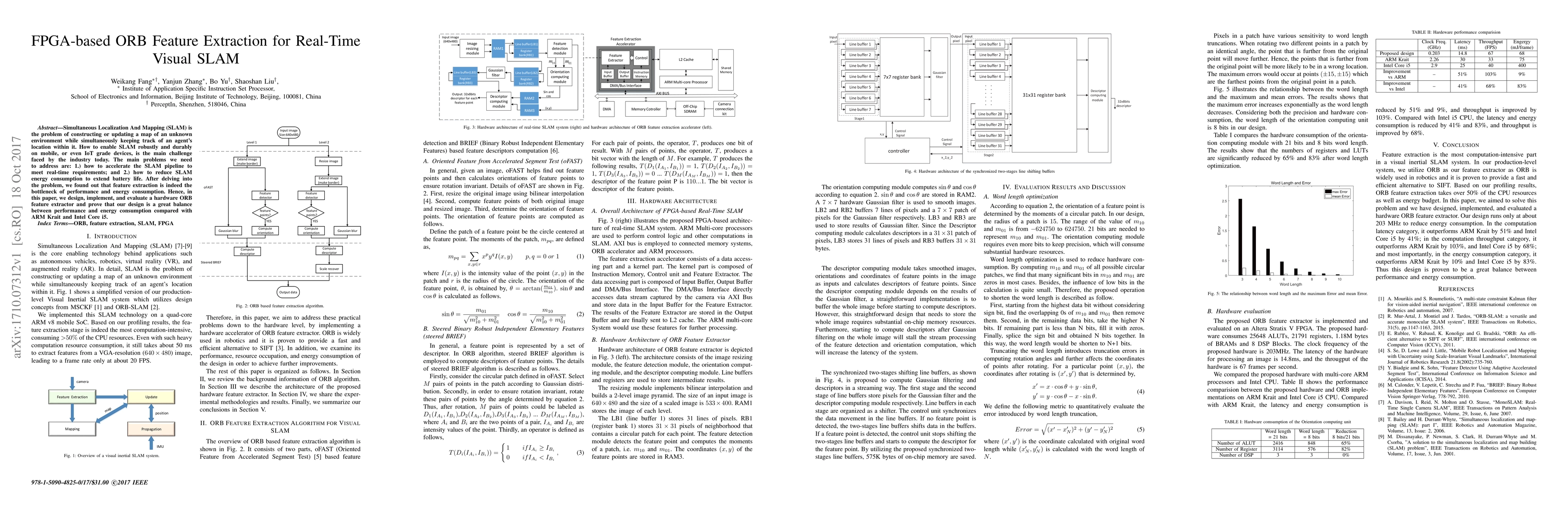 The proposed design provides a great balance between performance and energy consumption for visual inertial SLAM systems.