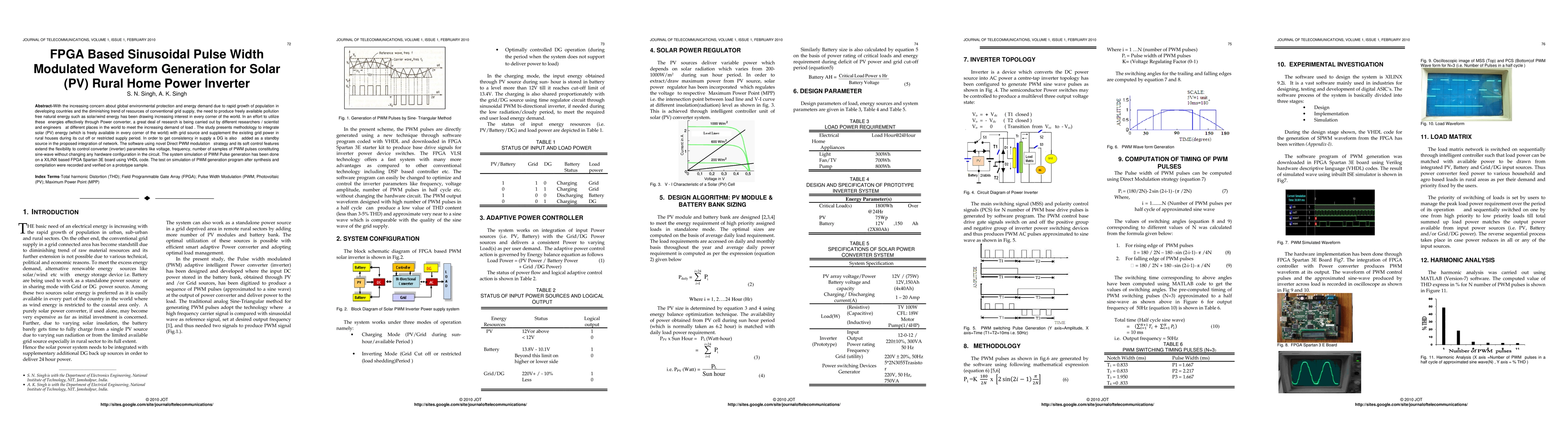With the increasing concern about global environmental protection and energy demand due to rapid growth of population in developing countries and the diminishing trend of resources of conventional grid supply, the need to produce freely available pollution free natural energy such as solar/wind energy has been drawing increasing interest in every corner of the world. In an effort to utilize these energies effectively through Power converter, a great deal of research is being carried out by different researchers / scientist and engineers at different places in the world to meet the increasing demand of load. The study presents methodology to integrate solar (PV) energy (which is freely available in every corner of the world) with grid source and supplement the existing grid power in rural houses during its cut off or restricted supply period. In order to get consistency in supply a DG is also added as a standby source in the proposed integration of network. The software using novel Direct PWM modulation strategy and its soft control features extend the flexibility to control converter (inverter) parameters like voltage, frequency, number of samples of PWM pulses constituting sine-wave without changing any hardware configuration in the circuit. The system simulation of PWM Pulse generation has been done on a XILINX based FPGA Spartan 3E board using VHDL code. The test on simulation of PWM generation program after synthesis and compilation were recorded and verified on a prototype sample.