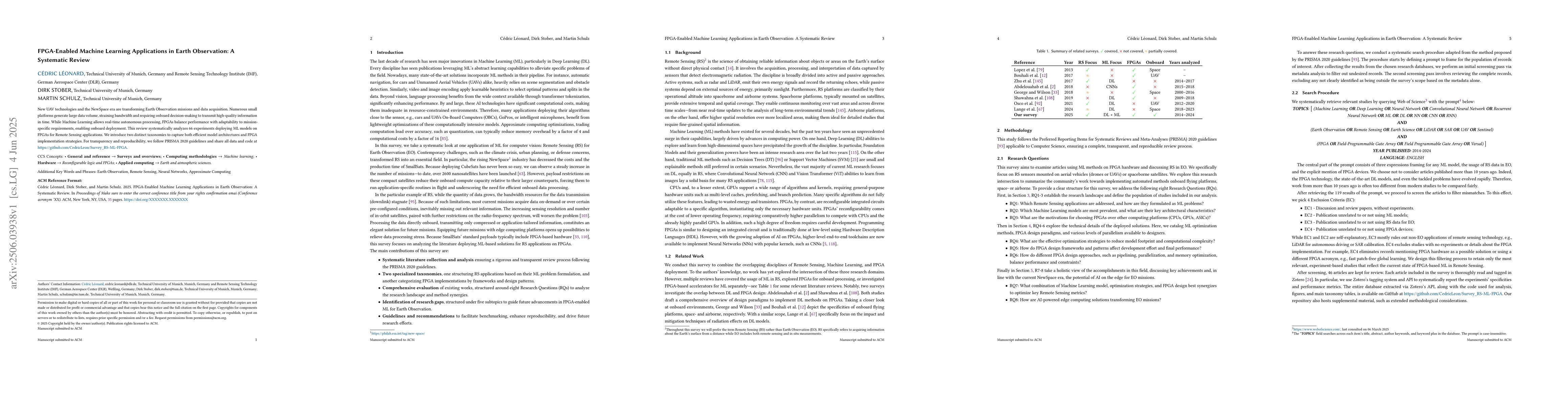 The paper employs a systematic review approach, analyzing 66 experiments that deploy ML models on FPGAs for Remote Sensing applications, guided by PRISMA 2020 guidelines.