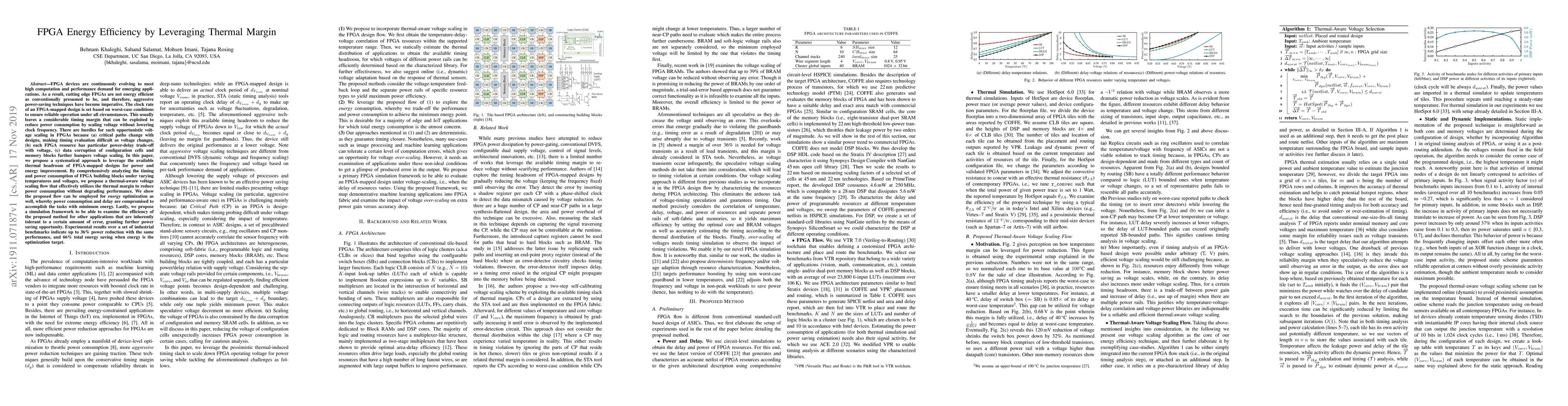 Researchers propose a thermal-aware voltage scaling method to reduce power consumption in FPGAs, achieving up to 36% power reduction while maintaining performance, and 66% total energy saving.