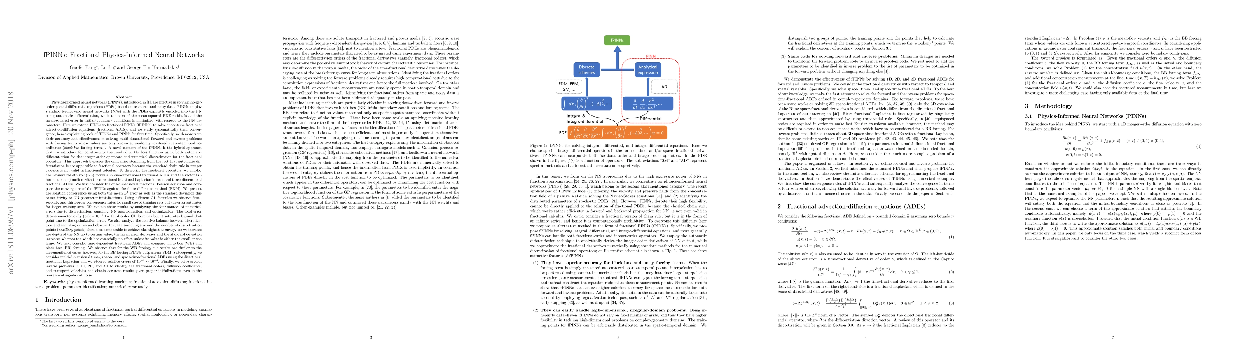 This paper introduces fPINNs, a novel method for solving fractional partial differential equations using neural networks, achieving accurate results even with noisy data and black-box forcing terms.
