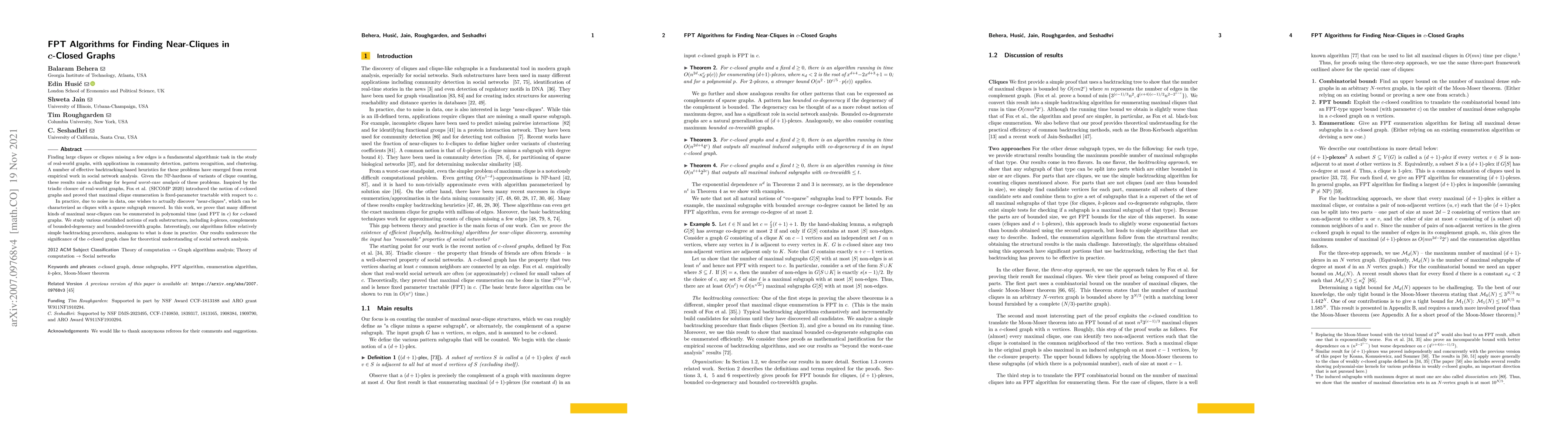 The paper presents novel FPT algorithms for enumerating maximal near-cliques in $c$-closed graphs, extending the work on clique enumeration in such graphs.