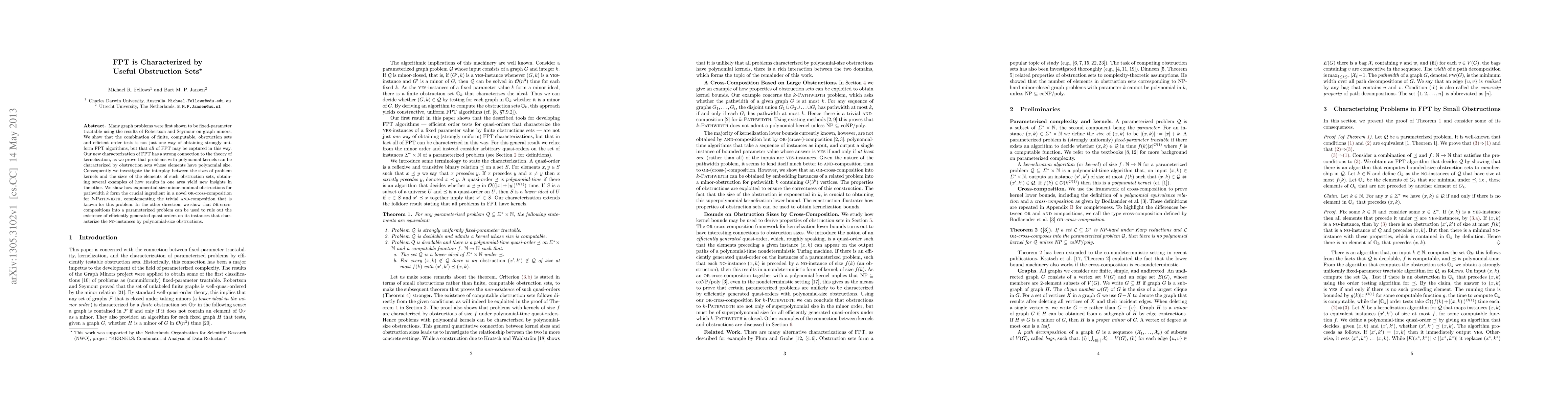 This paper characterizes fixed-parameter tractability (FPT) through finite, computable obstruction sets and efficient order tests, showing that all FPT problems can be captured this way. It also explores the relationship between problem kernel sizes and the sizes of obstruction sets, revealing insights into both kernelization and OR-cross-compositions for pathwidth problems.