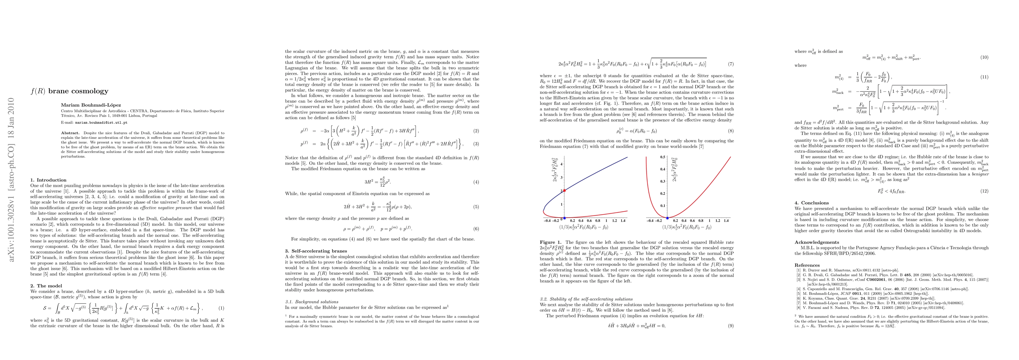 This paper proposes an f(R) modification to the DGP brane cosmology to self-accelerate the normal DGP branch, avoiding the ghost problem inherent in the original model. The authors derive de Sitter solutions and analyze their stability under homogeneous perturbations.