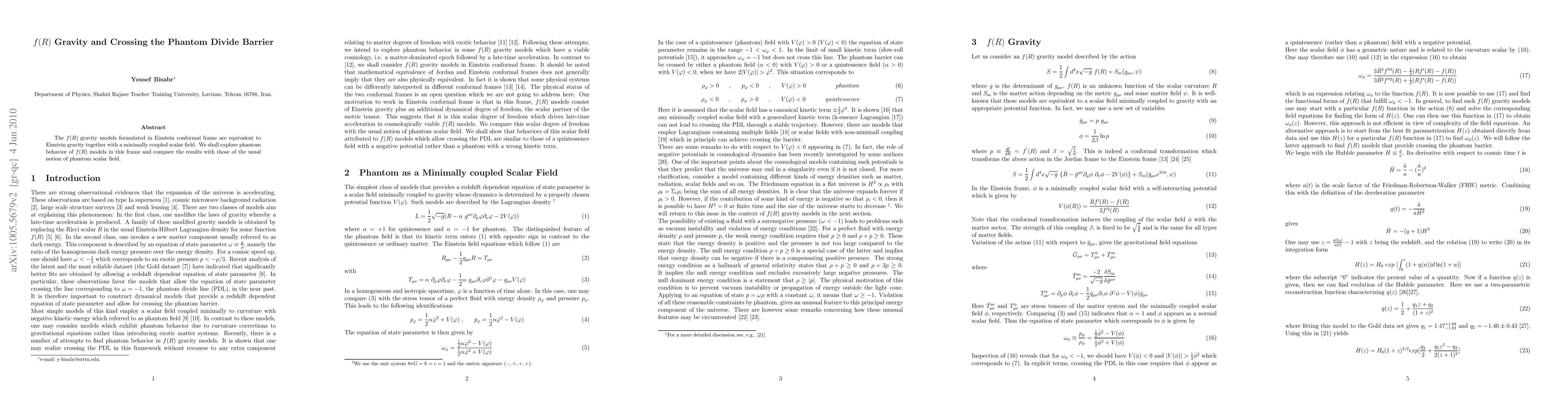 Summary: This paper investigates $f(R)$ gravity models in the Einstein conformal frame, showing their equivalence to Einstein gravity with a minimally coupled scalar field, and examines their phantom behavior, comparing it to traditional phantom scalar fields.
