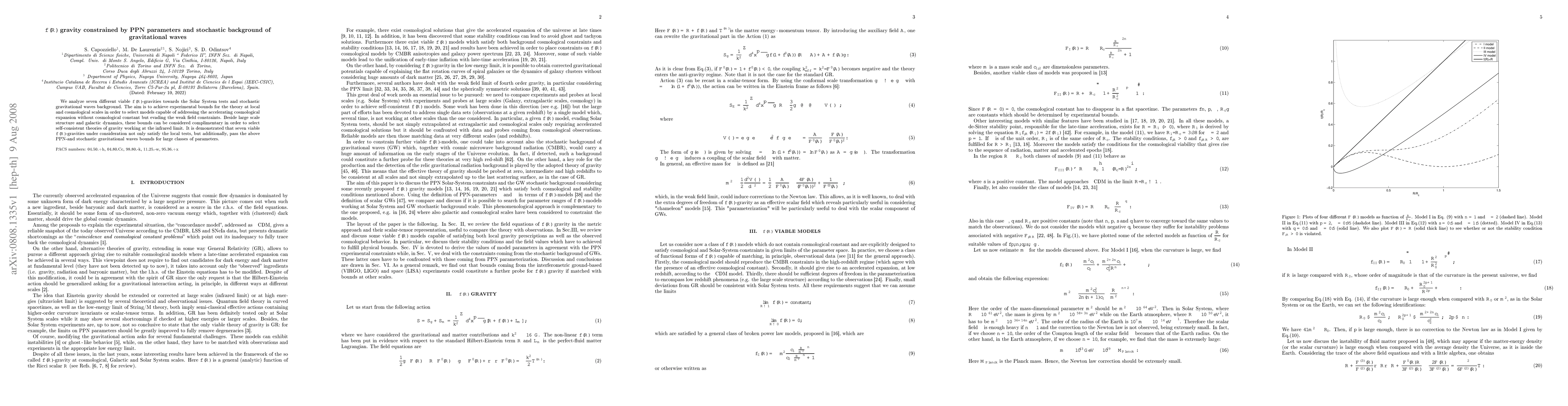 This paper examines seven viable $f(R)$ gravity models to determine their compatibility with Solar System tests, PPN parameters, and stochastic gravitational wave backgrounds, aiming to identify models that can explain cosmological expansion without a cosmological constant while adhering to weak field constraints. The study finds that these models satisfy both local and cosmological scale experimental bounds.