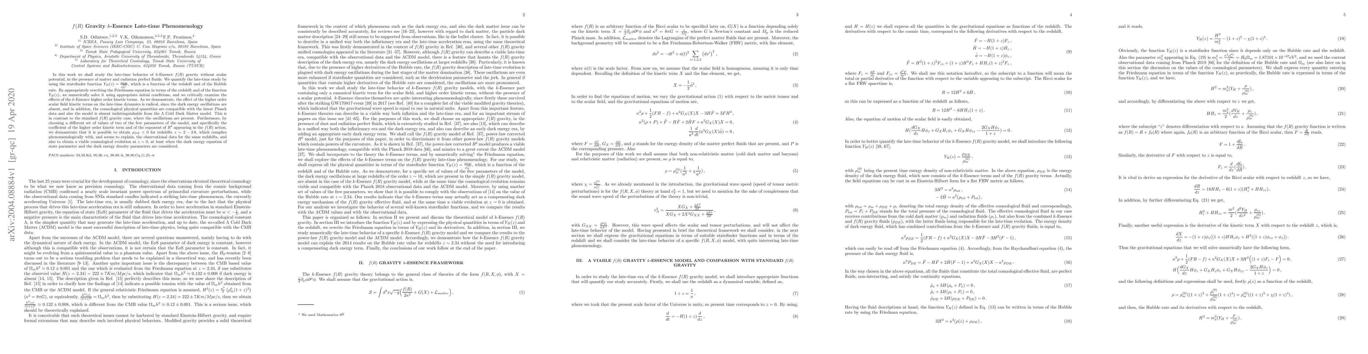 This paper investigates the late-time behavior of $k$-Essence $f(R)$ gravity without scalar potential, showing that higher-order kinetic terms eliminate dark energy oscillations. The model aligns well with Planck data and behaves similarly to the $\Lambda$ Cold Dark Matter model, while also explaining observational data for redshifts $z\sim2-3.8$ through negative dark energy density.