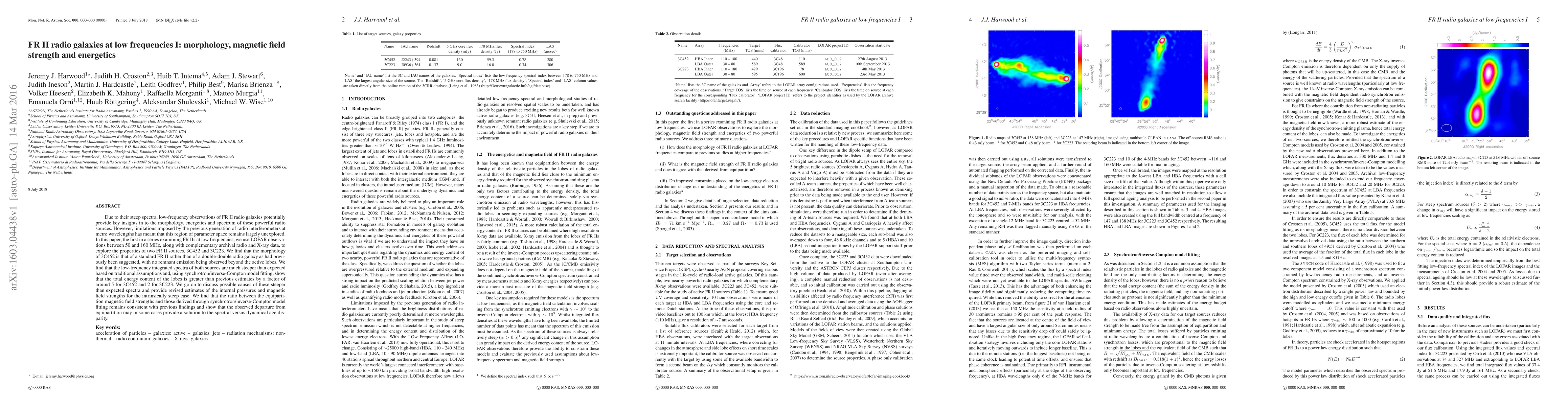 This paper uses LOFAR observations to investigate the morphology, energetics, and magnetic field strengths of two FR II radio galaxies, 3C452 and 3C223, finding that their low-frequency spectra are steeper than expected and that the total energy content of their lobes is significantly higher than previous estimates.