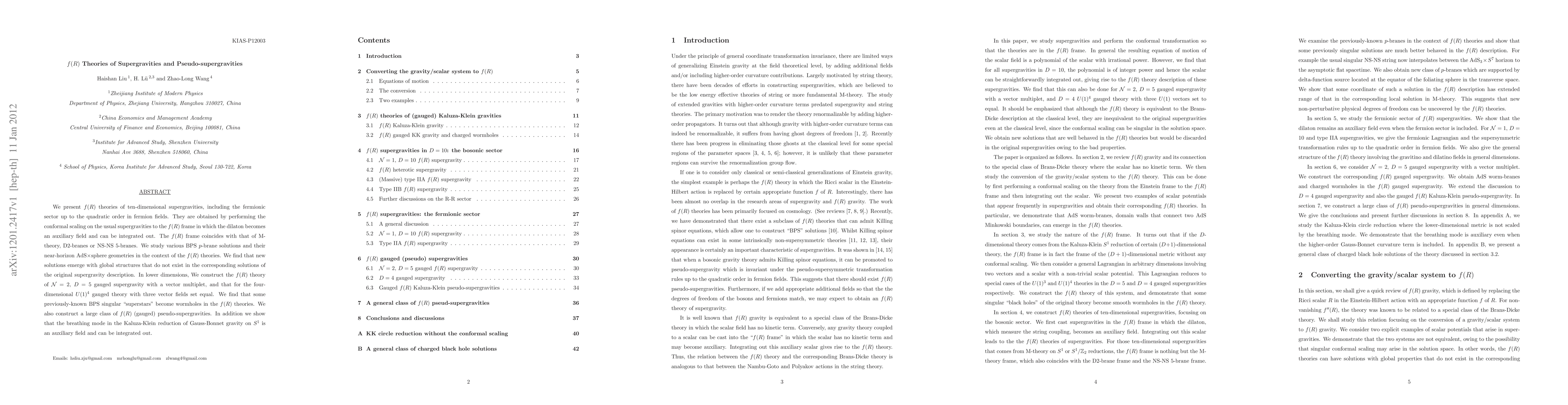 This paper explores f(R) theories of ten-dimensional supergravities, deriving them via conformal scaling and examining their fermionic sectors. It reveals new BPS p-brane solutions and global structures absent in original supergravity, and constructs f(R) theories for lower-dimensional gauged supergravities, transforming certain BPS singularities into wormholes.