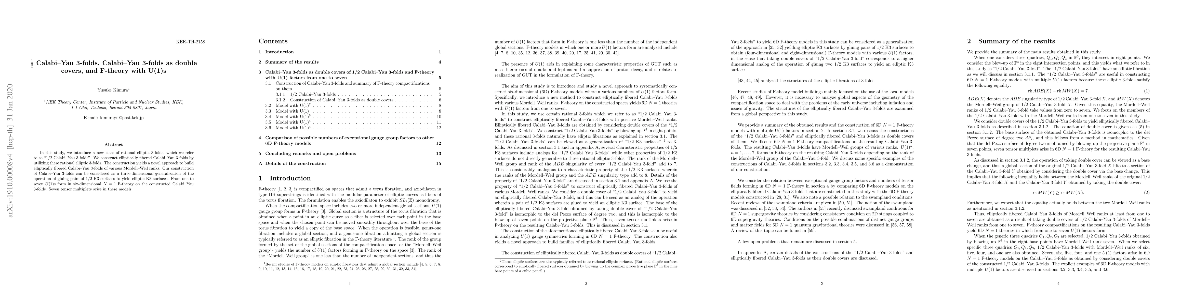This paper introduces "1/2 Calabi-Yau 3-folds" to construct elliptically fibered Calabi-Yau 3-folds, generalizing the combination of 1/2 K3 surfaces into elliptic K3 surfaces, and shows how these yield up to seven $U(1)$s in $N=1$ F-theory.
