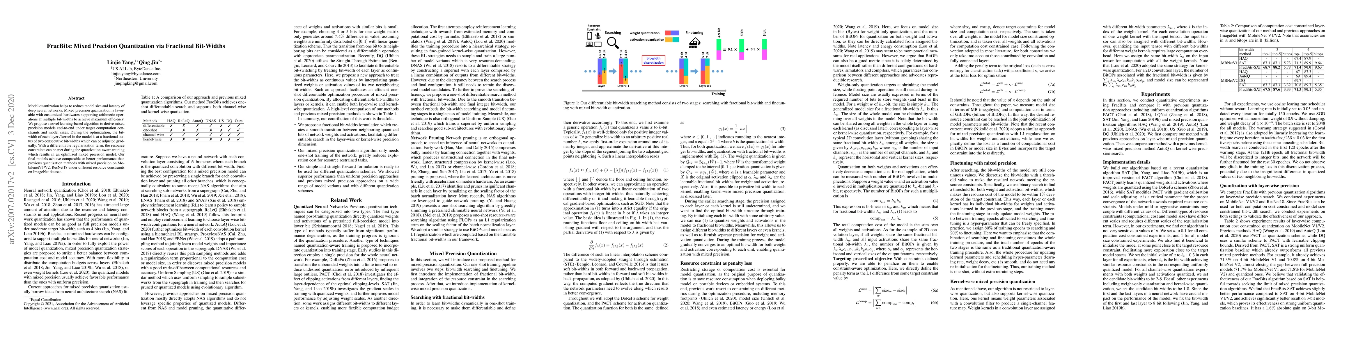 FracBits presents a differentiable bit-width searching method consisting of two stages: searching with fractional bit-width and fine-tuning with mixed bit-width quantization, enabling end-to-end optimization of mixed precision models under resource constraints.