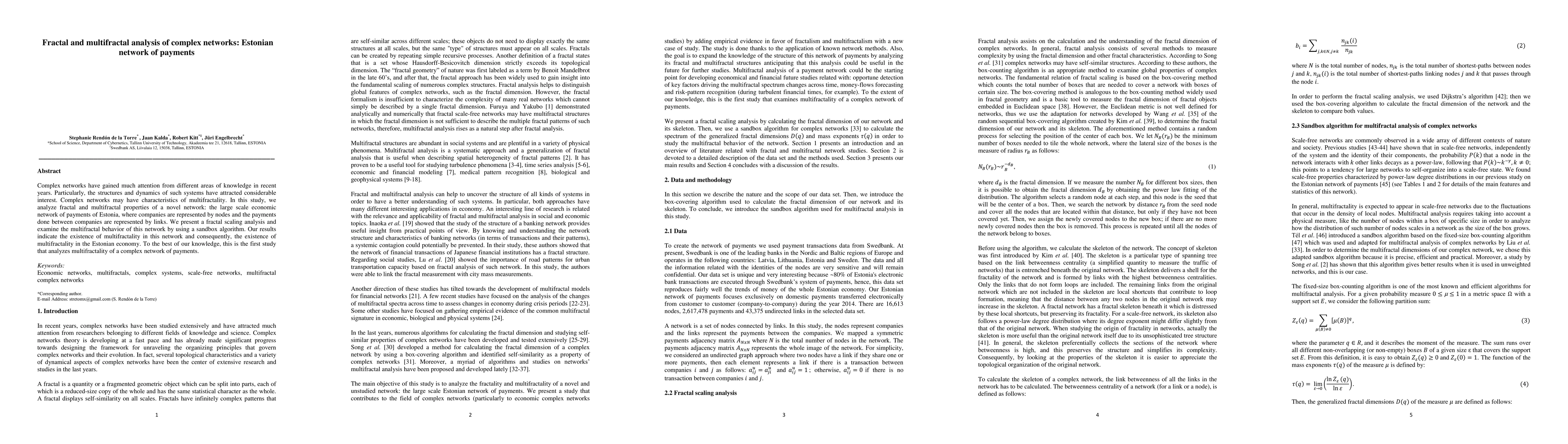 This study analyzes fractal and multifractal properties of Estonia's large-scale economic network of payments using a sandbox algorithm. Results reveal multifractality in the network, indicating complex dynamics in the Estonian economy, marking the first such analysis of a complex payments network.