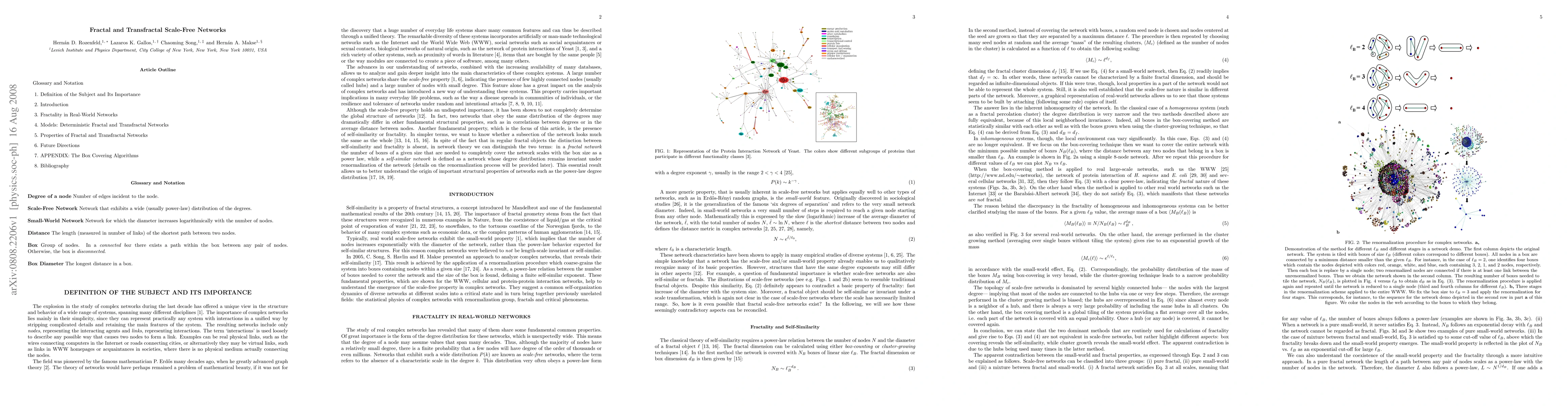 Self-similarity is a property of fractal structures, a concept introduced by Mandelbrot and one of the fundamental mathematical results of the 20th century. The importance of fractal geometry stems from the fact that these structures were recognized in numerous examples in Nature, from the coexistence of liquid/gas at the critical point of evaporation of water, to snowflakes, to the tortuous coastline of the Norwegian fjords, to the behavior of many complex systems such as economic data, or the complex patterns of human agglomeration. Here we review the recent advances in self-similarity of complex networks and its relation to transport, diffusion, percolations and other topological properties such us degree distribution, modularity, and degree-degree correlations.