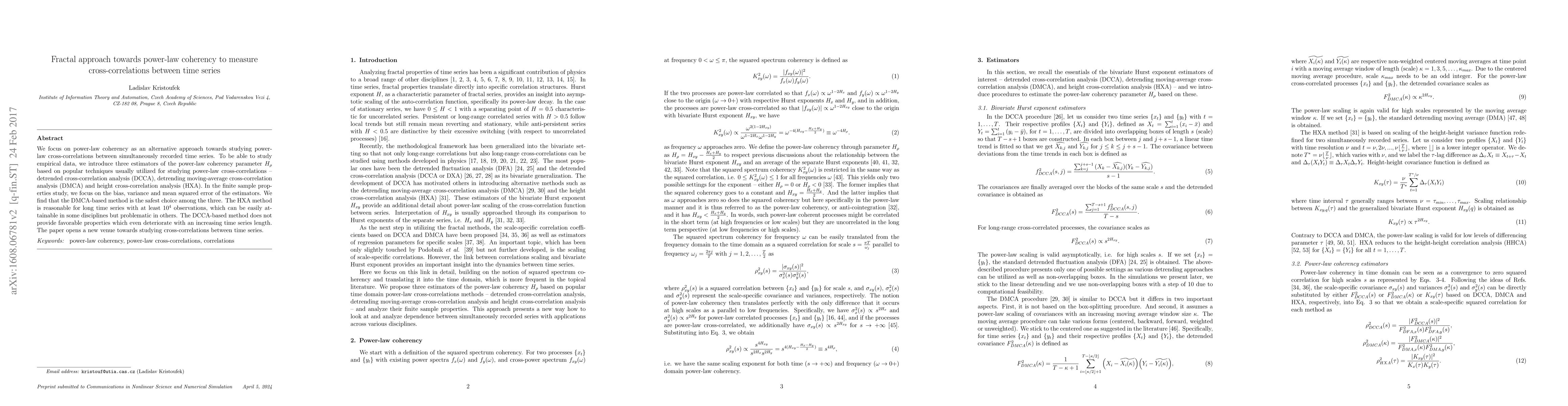 The research introduces three estimators for the power-law coherency parameter H_ρ based on DCCA, DMCA, and HXA techniques to study power-law cross-correlations between time series.