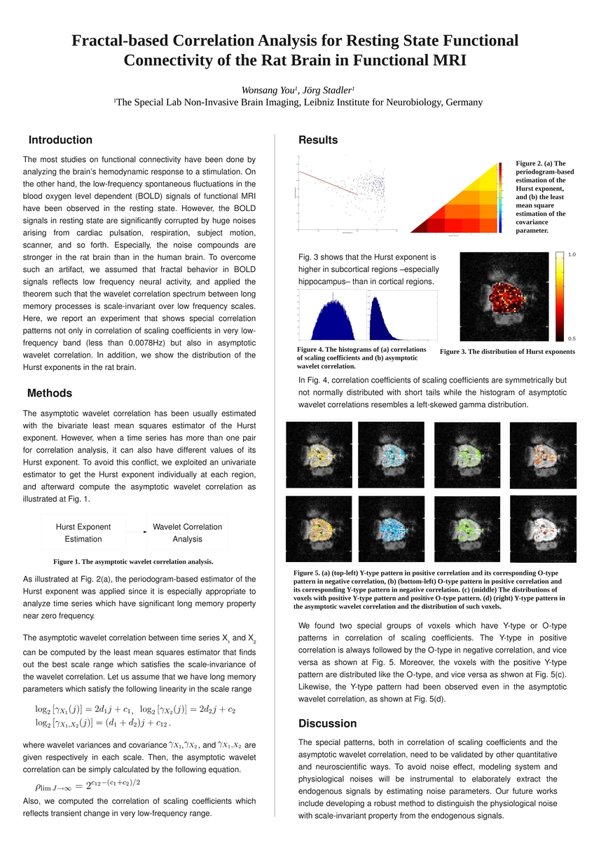 The most studies on functional connectivity have been done by analyzing the brain's hemodynamic response to a stimulation. On the other hand, the low-frequency spontaneous fluctuations in the blood oxygen level dependent (BOLD) signals of functional MRI have been observed in the resting state. However, the BOLD signals in resting state are significantly corrupted by huge noises arising from cardiac pulsation, respiration, subject motion, scanner, and so forth. Especially, the noise compounds are stronger in the rat brain than in the human brain. To overcome such an artifact, we assumed that fractal behavior in BOLD signals reflects low frequency neural activity, and applied the theorem such that the wavelet correlation spectrum between long memory processes is scale-invariant over low frequency scales. Here, we report an experiment that shows special correlation patterns not only in correlation of scaling coefficients in very low-frequency band (less than 0.0078Hz) but also in asymptotic wavelet correlation. In addition, we show the distribution of the Hurst exponents in the rat brain.
