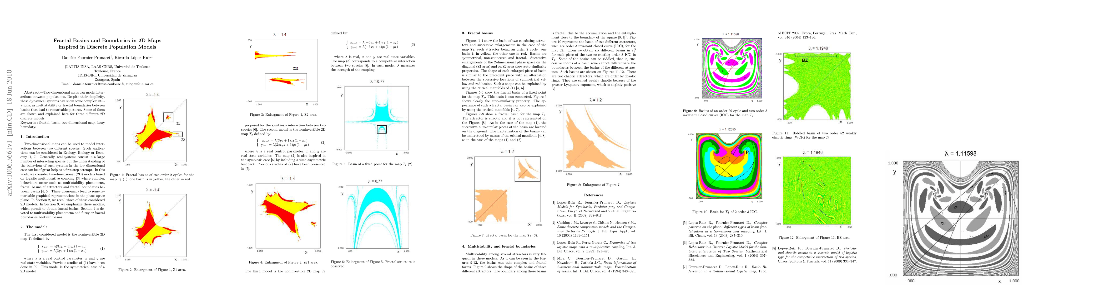 This paper explores two-dimensional maps inspired by discrete population models, revealing complex dynamics such as multistability and fractal boundaries between basins, illustrated through three specific 2D discrete models. The study highlights the intricate patterns that emerge from simple population interactions.