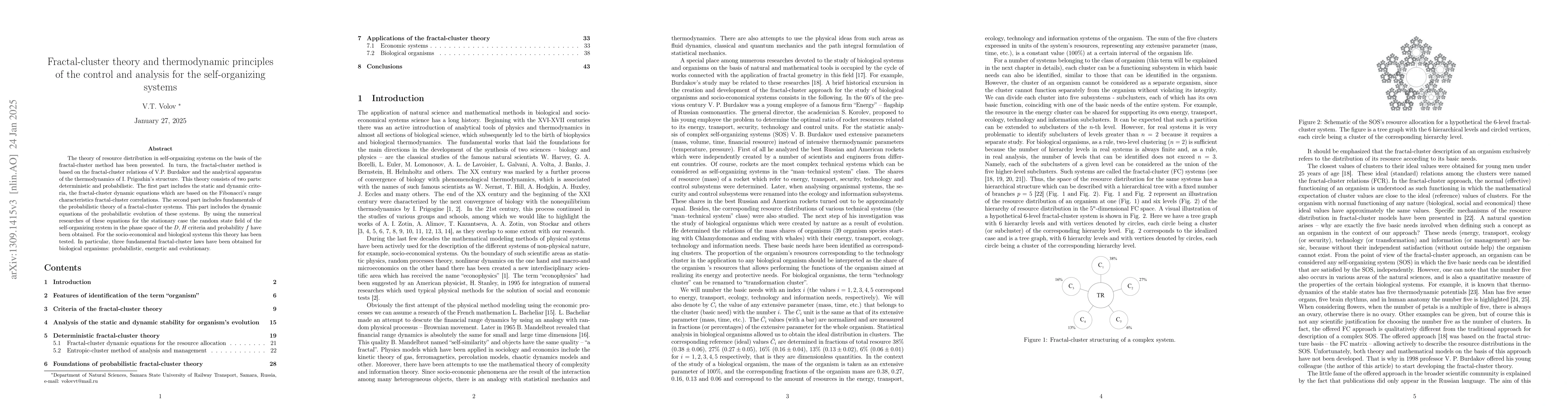 This paper presents a fractal-cluster theory for resource distribution in self-organizing systems, combining fractal-cluster relations and thermodynamic principles. It includes deterministic and probabilistic parts, with applications tested in socio-economical and biological systems, yielding three fundamental fractal-cluster laws.