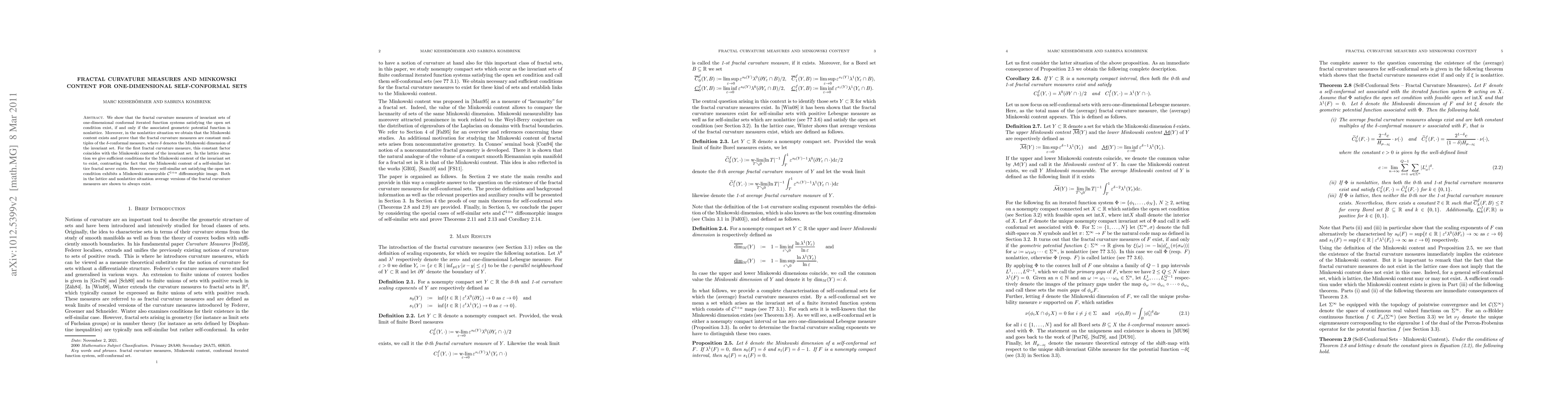 The research employs a mathematical analysis of one-dimensional self-conformal sets, examining fractal curvature measures and Minkowski content under specific conditions.