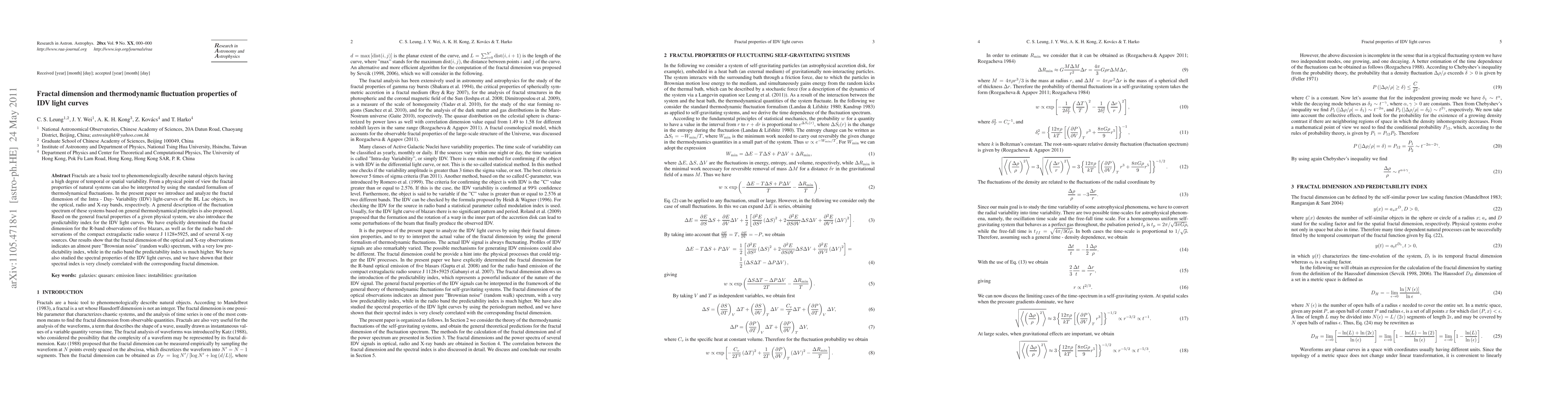 Fractals are a basic tool to phenomenologically describe natural objects having a high degree of temporal or spatial variability. From a physical point of view the fractal properties of natural systems can also be interpreted by using the standard formalism of thermodynamical fluctuations. In the present paper we introduce and analyze the fractal dimension of the Intra - Day- Variability (IDV) light-curves of the BL Lac objects, in the optical, radio and X-ray bands, respectively. A general description of the fluctuation spectrum of these systems based on general thermodynamical principles is also proposed. Based on the general fractal properties of a given physical system, we also introduce the predictability index for the IDV light curves. We have explicitly determined the fractal dimension for the R-band observations of five blazars, as well as for the radio band observations of the compact extragalactic radio source J 1128+5925, and of several X-ray sources. Our results show that the fractal dimension of the optical and X-ray observations indicates an almost pure "Brownian noise" (random walk) spectrum, with a very low predictability index, while in the radio band the predictability index is much higher. We have also studied the spectral properties of the IDV light curves, and we have shown that their spectral index is very closely correlated with the corresponding fractal dimension.