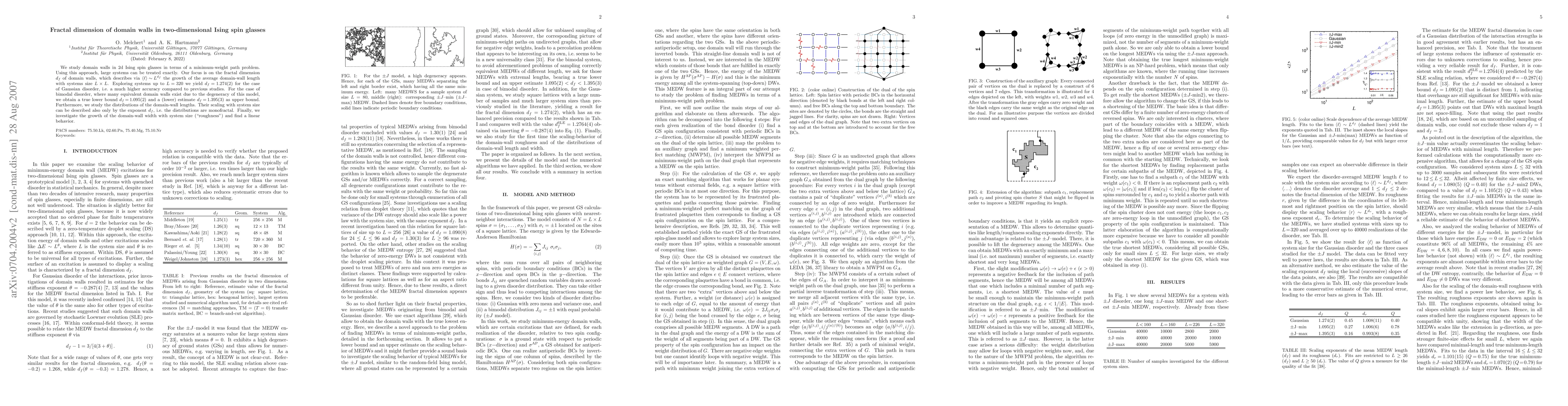 We study domain walls in 2d Ising spin glasses in terms of a minimum-weight path problem. Using this approach, large systems can be treated exactly. Our focus is on the fractal dimension $d_f$ of domain walls, which describes via $<\ell >\simL^{d_f}$ the growth of the average domain-wall length with %% systems size $L\times L$. %% 20.07.07 OM %% Exploring systems up to L=320 we yield $d_f=1.274(2)$ for the case of Gaussian disorder, i.e. a much higher accuracy compared to previous studies. For the case of bimodal disorder, where many equivalent domain walls exist due to the degeneracy of this model, we obtain a true lower bound $d_f=1.095(2)$ and a (lower) estimate $d_f=1.395(3)$ as upper bound. Furthermore, we study the distributions of the domain-wall lengths. Their scaling with system size can be described also only by the exponent $d_f$, i.e. the distributions are monofractal. Finally, we investigate the growth of the domain-wall width with system size (``roughness'') and find a linear behavior.