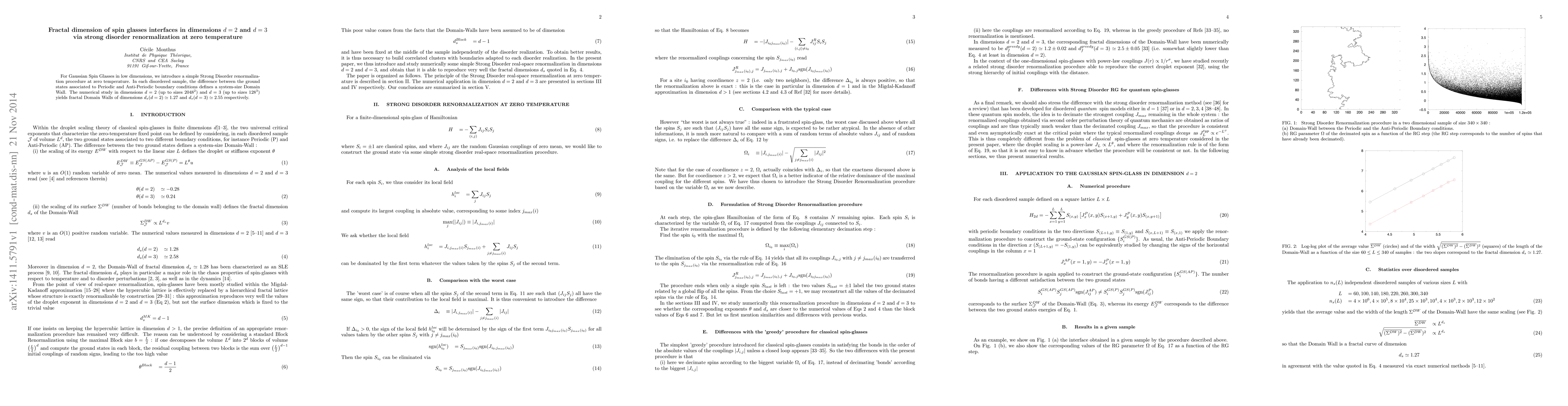 For Gaussian Spin Glasses in low dimensions, we introduce a simple Strong Disorder renormalization procedure at zero temperature. In each disordered sample, the difference between the ground states associated to Periodic and Anti-Periodic boundary conditions defines a system-size Domain Wall. The numerical study in dimensions $d=2$ (up to sizes $2048^2$) and $d=3$ (up to sizes $128^3$) yields fractal Domain Walls of dimensions $d_s(d=2) \simeq 1.27$ and $d_s(d=3) \simeq 2.55$ respectively.