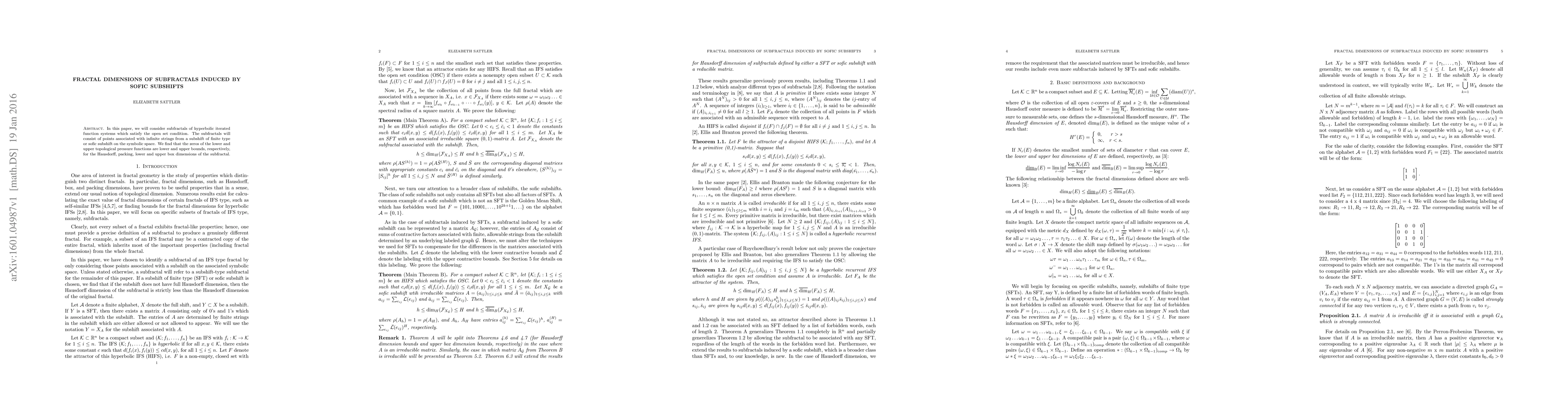 In this paper, we will consider subfractals of hyperbolic iterated function systems which satisfy the open set condition. The subfractals will consist of points associated with infinite strings from a subshift of finite type or sofic subshift on the symbolic space. We find that the zeros of the lower and upper topological pressure functions are lower and upper bounds, respectively, for the Hausdorff, packing, lower and upper box dimensions of the subfractal.